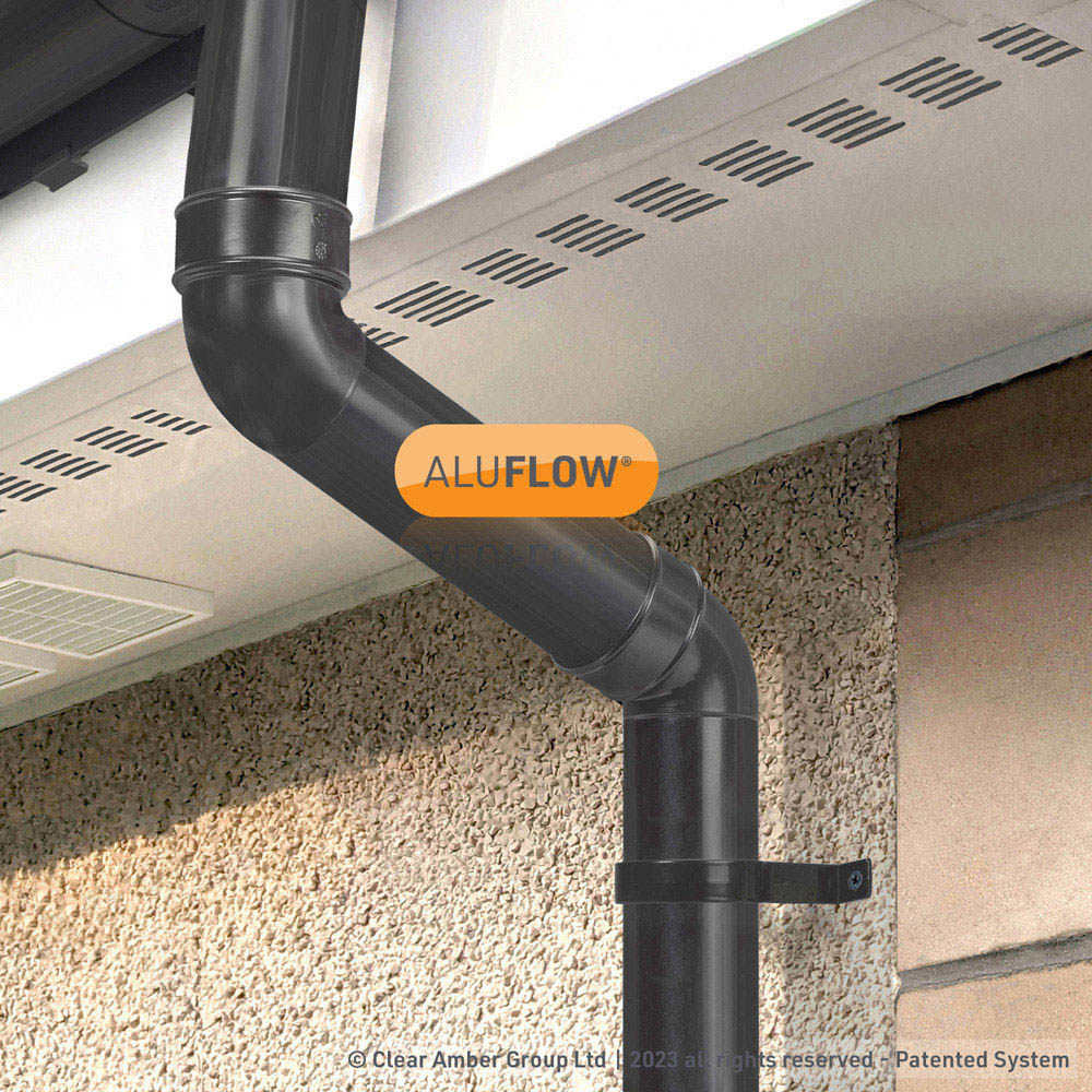 The Aluflow Grey Downpipe Offset Bend is a high-quality product made from durable aluminium. This downpipe bend features a 112-degree angle, which is ideal for creating Swan's necks and changing the direction of the downpipe. Its slot-fit design makes installation a breeze, just like the rest of the Aluflow aluminium guttering system. To ensure proper installation, always use the Aluflow downpipe clips and securely fix this component. For straight joins, use an Aluflow downpipe connector.