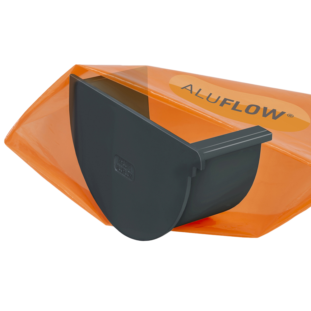 Aluflow Grey Gutter Deep Left Hand Stop End
