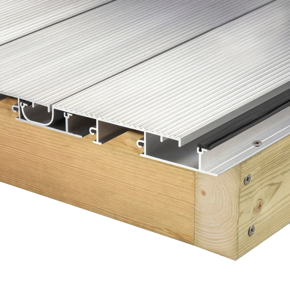 Blow life in your garden with the Alupave Mill Decking Board. this decking board is genuinely unique since it combines patented and cutting-edge characteristics. The double seal connection between each mill board distinguishes the brand from the competitors and prevents water from penetrating the substructure. With a double-peak anti-wear surface and an extruded aluminium construction, it provides an exceptional lifespan for high-traffic regions and long-term requirements. The decking is suitable for usage on tall structures since it has inherent fire-resistant properties. Also, the flat roofing system's integrated gutter system offers improved water management. It delivers superior aesthetics for your project since there are no unattractive clips or brackets required and all fixings are totally concealed. Size 6M
