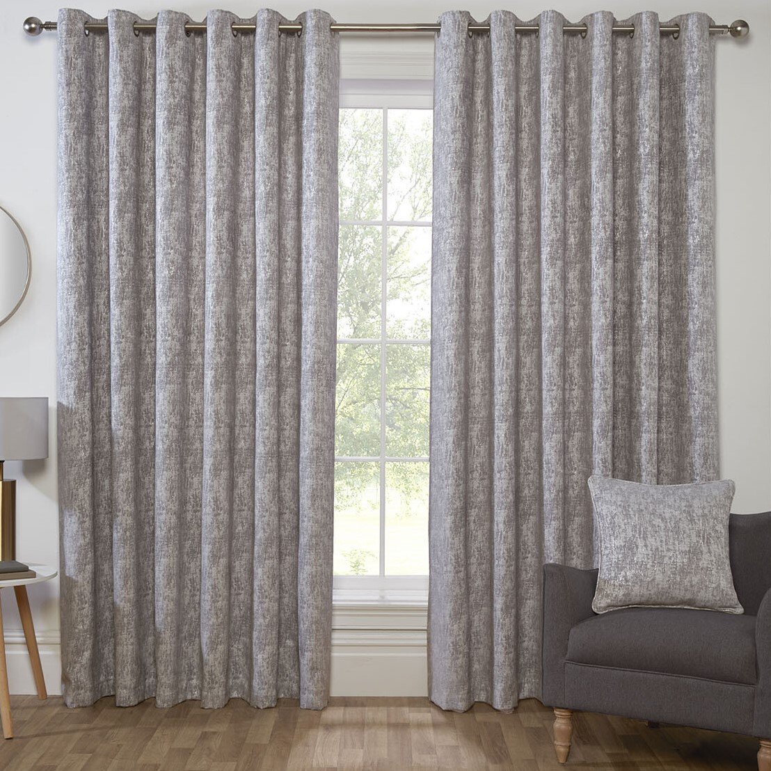 Elevate your space with the Amara Chenille Eyelet Curtain. Designed with a subtle metallic finish, this curtain features a textured chenille that enhances your decor with depth and elegance. The eyelet header makes hanging effortless, allowing it to drape beautifully, whether used in the living room, bedroom, or any other space.