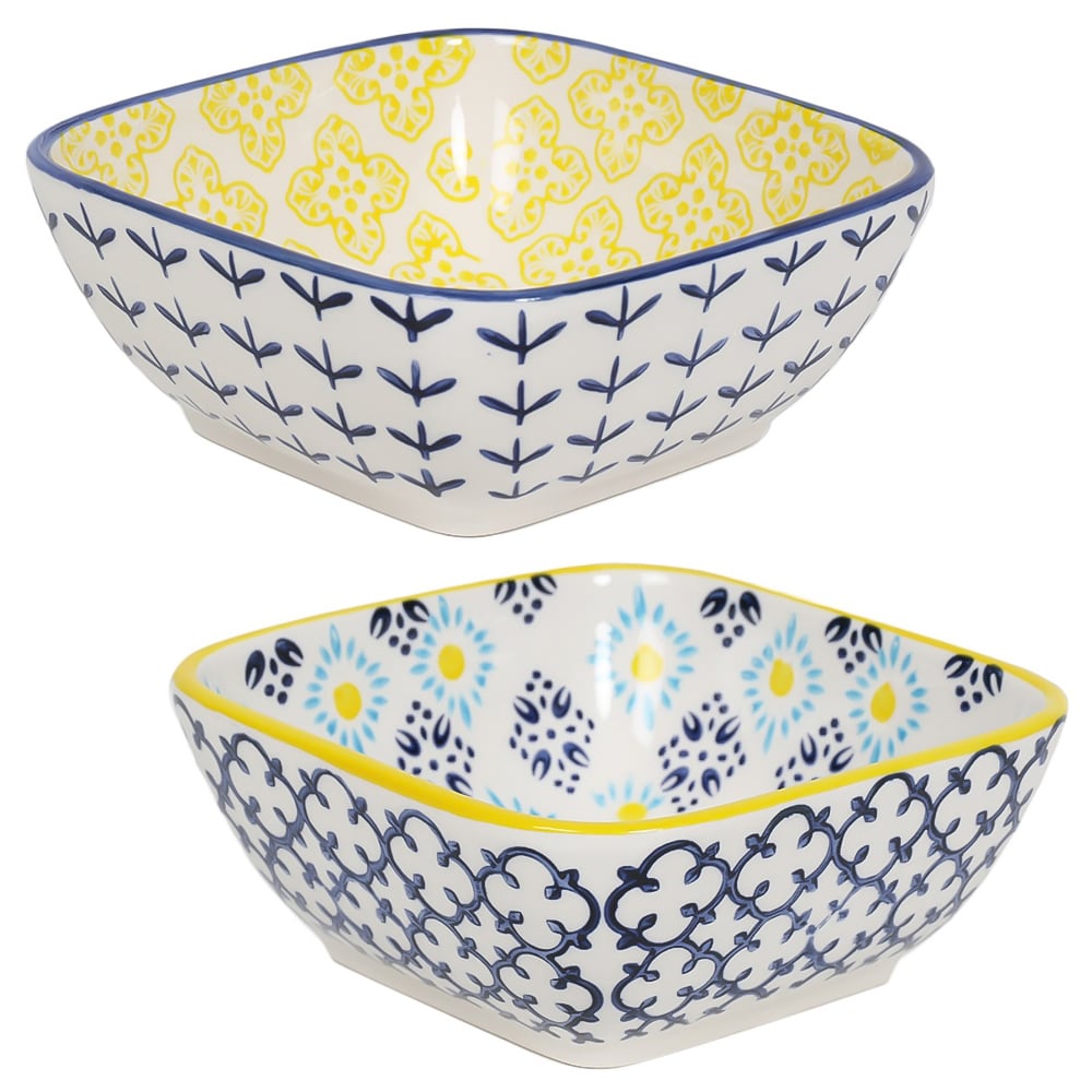 The Amari Yellow 5" Square Bowl is a bold and unique addition to your kitchen collection. The bowl is ideal for serving food, including salads, noodles, desserts, and more. The stylish bowl is available in two designs featuring intricate patterns that draw the eye to any table.