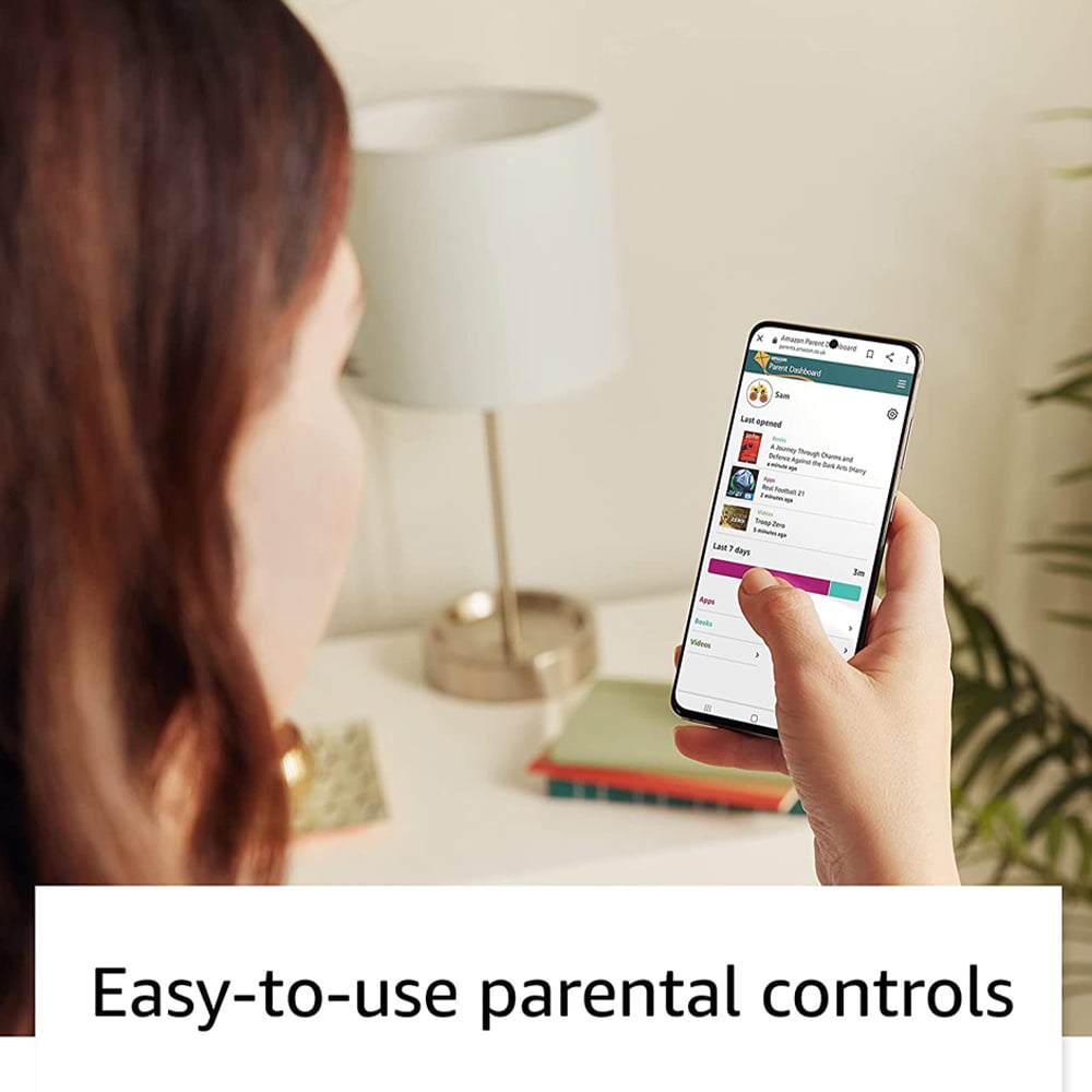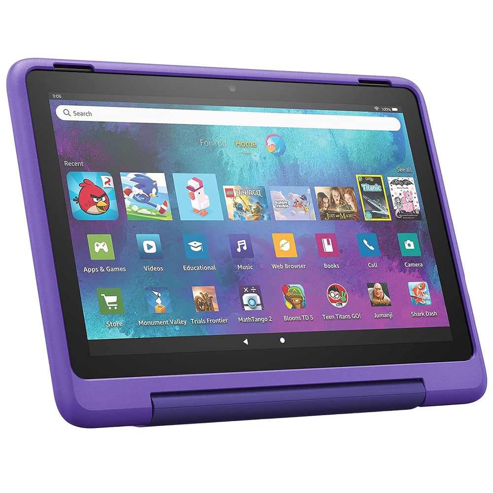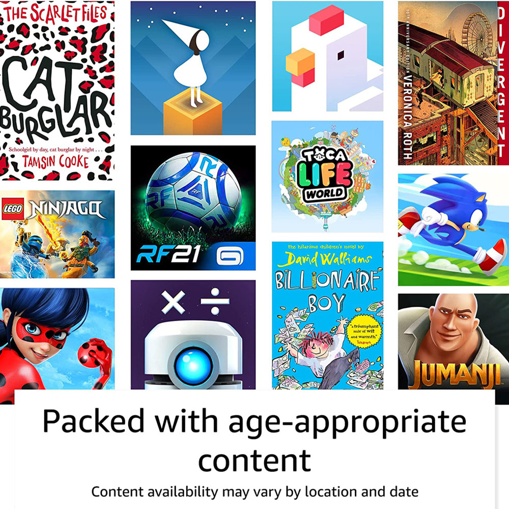 Let your child explore, but with a limit, with this Amazon Fire HD 10 Kids Pro Tablet 10.1 inch 32GB Purple, a child-friendly device. School-age children will enjoy a one-year subscription to Amazon Kids+ that unlocks thousands of apps, games, books, videos, songs and Audible audiobooks. They'll find educational content from National Geographic, Collins Big Cat and more. The tablet features an octa-core processor, 3GB of RAM, 10.1 inch full HD display, dual cameras, USB-C (2.0) port and up to 1 TB of expandable storage. The screen is made with strengthened aluminium silicate glass. This full-featured 10.1-inch Full HD tablet comes with a Kid-Friendly Case, a 2-year worry-free guarantee and one year of Amazon Kids+. Packed with age-appropriate content, it has easy-to-use parental control, and children can talk to parent-approved content only. In addition to Kids+ content, Kids Pro tablets include access to a digital store. Children can request apps while parents approve purchases and downloads. Please Note: Content availability may vary by location and date.
