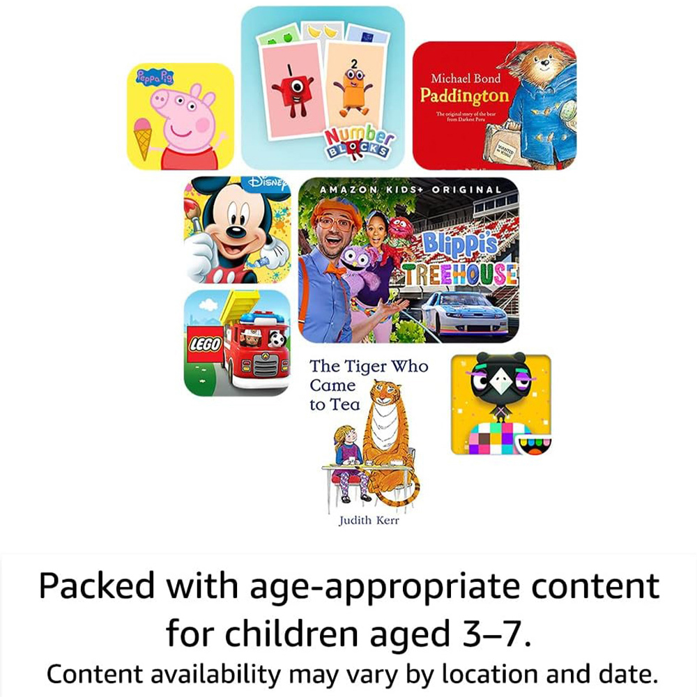 Elevate your child's digital experience with Amazon Fire HD 8 Kids Tablet in purple. This device features an eight-inch HD display, 2GB RAM, and 32GB storage (expandable up to 1TB). With up to 13 hours of battery time, this table is perfect for enjoying books and programmes and listening to music for long periods. Suitable for children between three to seven years, the tablet comes with one year of Amazon Kids+ and a child-proof case with a built-in stand. This subscription includes thousands of advert-free books, games, videos and apps from Disney, Nickelodeon, Peppa Pig and more. With a two-year worry-free guarantee, if the tablet breaks, return it and Amazon will replace it for free. Durable and strong, the screen is made with strengthened aluminosilicate glass and a sturdy case designed to protect against drops and bumps. Please note: Content availability may vary by location and date. RAM: 2GB. Storage: 32GB. Size: 8-inch.