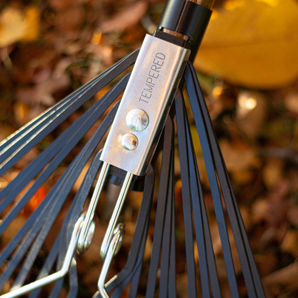 This AMES Tools Carbon Steel Flat Tine Garden Leaf Rake is ideal for collecting leaves and grass cuttings from your lawn, beds, and borders. Designed with 24 flat and flexible tines, this rake is perfect for quick general clearing of garden debris for your garden. Designed to last, the carbon steel has been specially tempered to withstand greater force without deforming, with a painted finish to protect against rust. The shaft is made from ethically sourced FSC-certified ash wood, complete with a cushioned grip for added comfort. It comes with a 15-year guarantee.