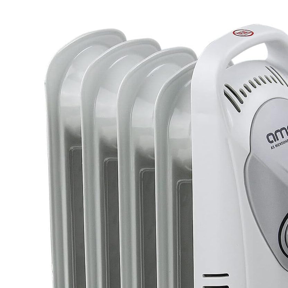 Warm up your space with the AMOS Oil Filled Radiator, a trusty addition to any room needing a touch of warmth. This radiator, with its five heating fins, quickly heats up, making it ideal for bedrooms, home offices, or even caravans when you need that extra bit of cosiness. What's great about this heater is its adjustable thermostat. You can easily set the temperature to suit your comfort, ensuring your room stays just how you like it. It's also environmentally friendly, so you can stay warm without worrying about your carbon footprint. Compact and portable, this radiator is a breeze to move around. Whether you're shifting it from room to room or taking it along on holiday, it's designed for easy transport. With its efficient 650W output, the radiator is the perfect solution for those extra chilly days, providing steady, reliable warmth exactly where you need it.