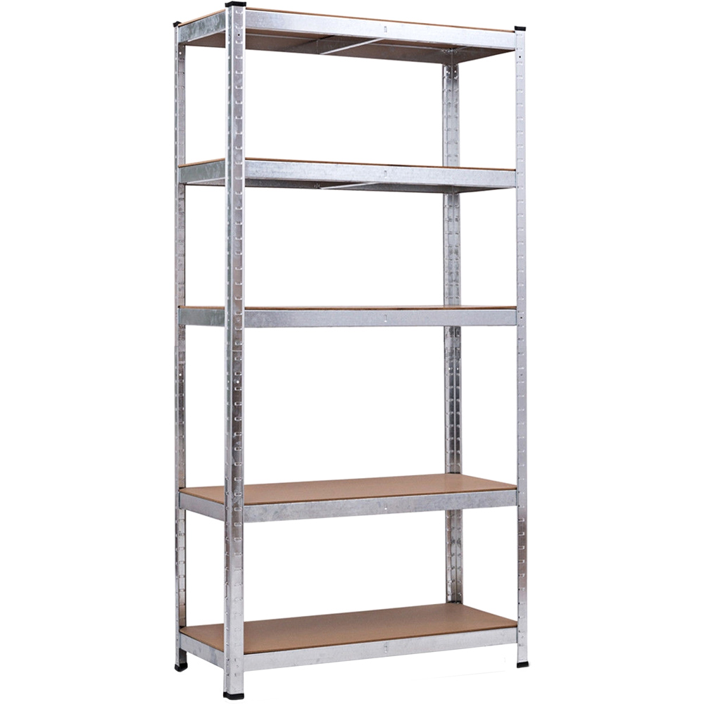 Maximise your storage space with the AMOS 5-Tier Silver Powder Coated Steel Shelving Unit. This robust and versatile rack, measuring 180 x 90 x 40cm, is ideal for garages, workshops, offices, or warehouses. Each of its five shelves can hold up to 175kg, offering a total capacity of 875kg - perfect for your outdoor equipment. Also, the adjustable design allows you to position each shelf at the ideal height for your storage needs, making it great for items of various sizes. For added convenience, you can even split the unit into two smaller racks if space is tight. Assembling this unit is a breeze, thanks to its innovative bolt-less design. Simply snap the beams into the slots on the legs at your desired height - no screws needed. Plus, there's an option to secure it to a wall for added stability (screws not included). This shelving unit, in sleek black, is not only functional but also adds a professional touch to any space.