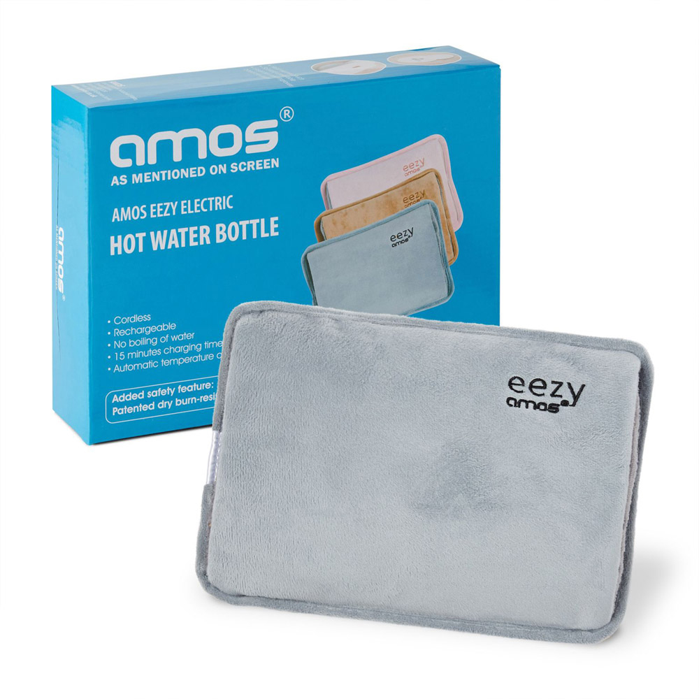 Stay snug and soothe those aches with the AMOS Eezy Grey Electric Hot Water Bottle. This innovative hot water bottle recharges quickly, taking just eight minutes to heat up to 65°C and keeps you warm for up to six hours. It's a game-changer for cold evenings or for easing those daily pains, including menstrual discomfort. Safety is key, thus unlike traditional hot water bottles, this one is permanently sealed, eliminating any risk of scalding from hot water. Also, its 'dry burn-resistant' technology ensures safe use every time, offering peace of mind alongside warmth. The bottle is wrapped in a soft, velvet brush-back fleece, while the inner hand-warming pockets are lined with an even fluffier fleece. Perfect for pre-warming your bed, using it as a hand warmer, or just for some extra comfort on a chilly evening. This eco-friendly option means no more refilling with water, making it ideal for travel. Lightweight and portable, it's available in three cosy colours - pink, grey, and coffee.