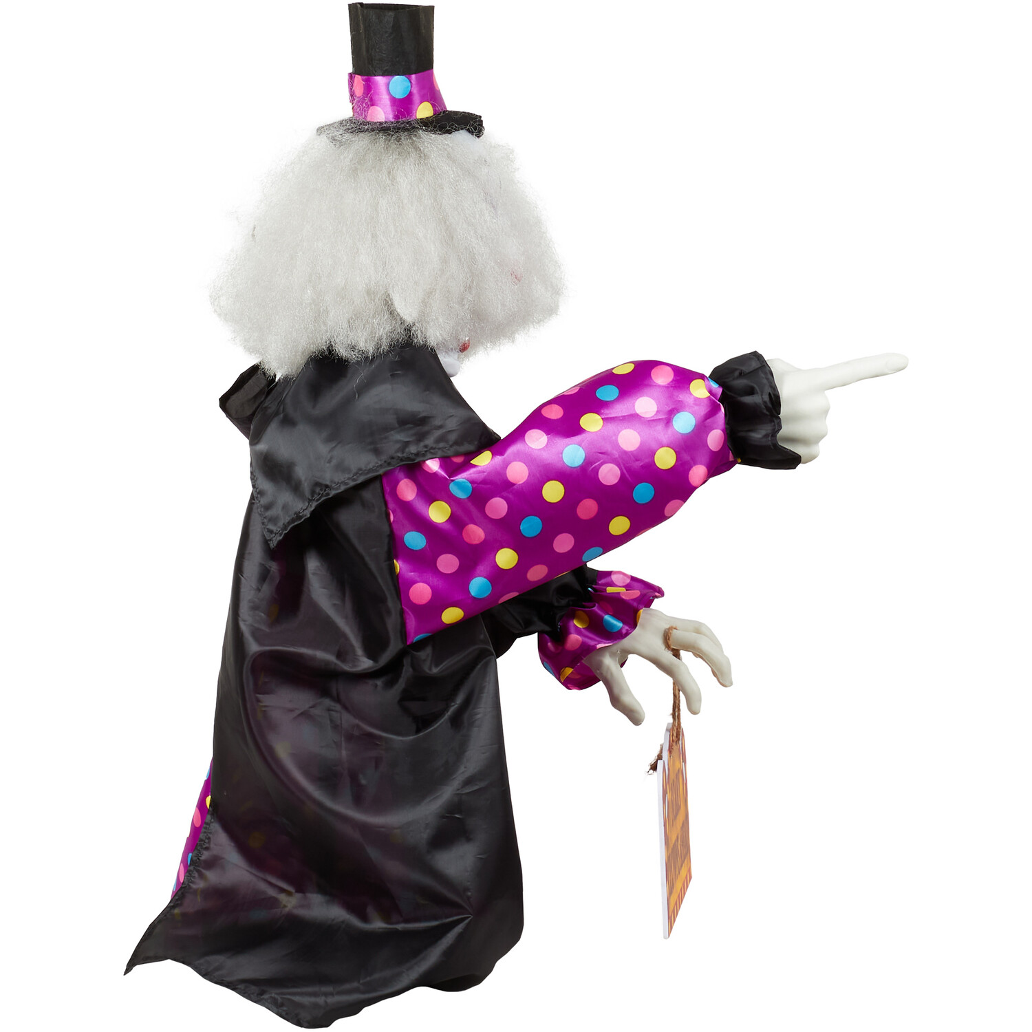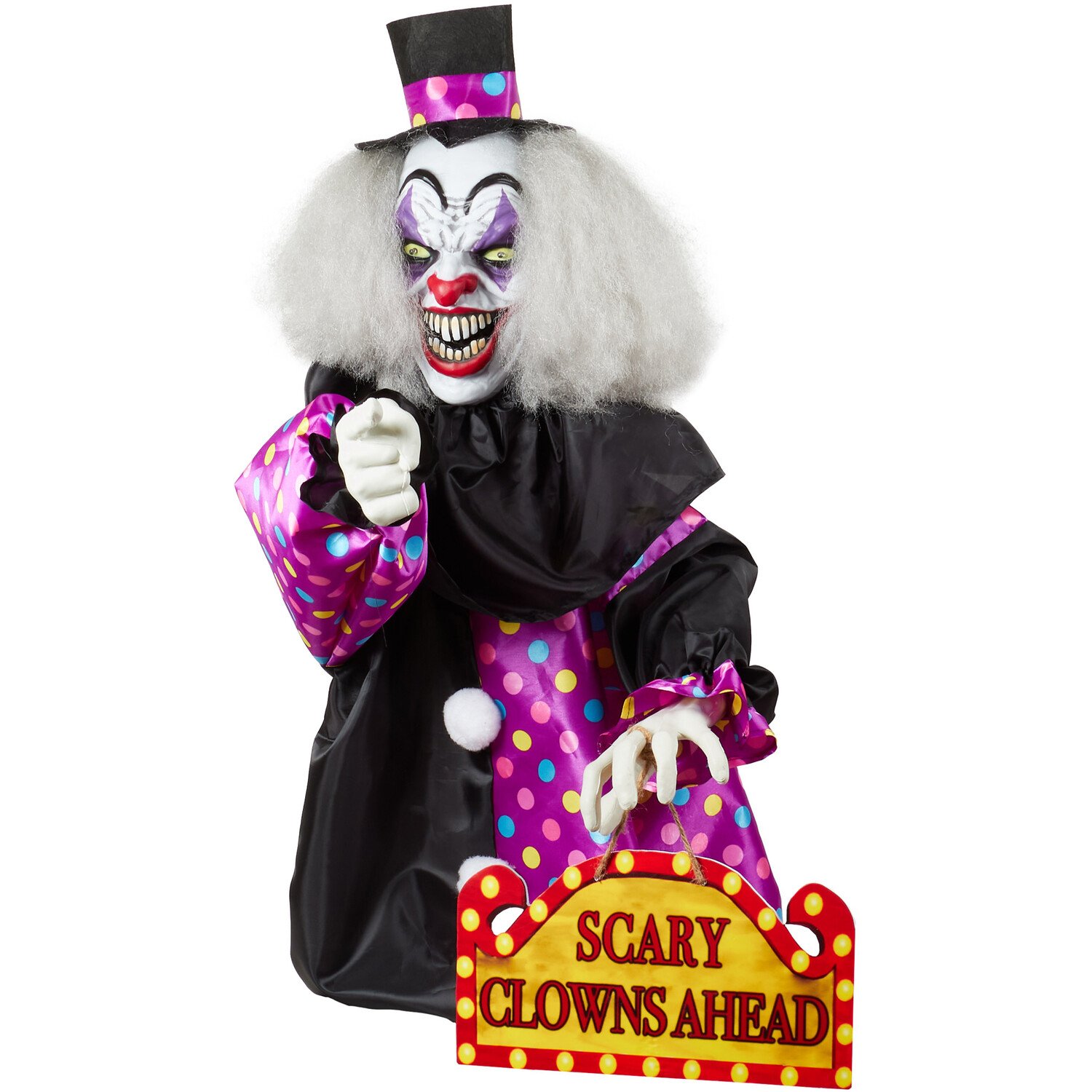 Terrify your neighbours and trick-or-treaters in a most eerie manner with this Animated Ground Breaker Creepy Clown Decoration. This clown gives off the appearance that it has broken through the ground and is ready to grab anyone who goes by. This animated decoration features a moving head and arms with light-up eyes and creepy sounds for an extra freaky effect. Battery-operated, it is a super scary decoration for your home this Halloween.