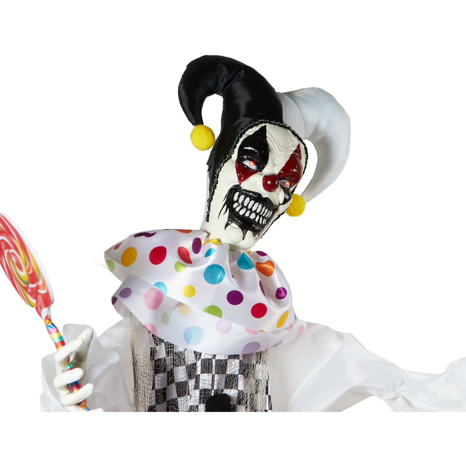 This Standing Animated Clown will set an extra spooky tone this Halloween. Standing tall with light-up eyes and a colourful lollipop to entice you closer, this creepy decoration will frighten your guests at your Halloween party and make your space feel like a true haunted house. With batteries included, this clown is great for standing in your doorway, ready to scare any guests and trick-or-treaters. The perfect addition to your home this spooky season, you'll be the talk of the town with this extra freaky decoration.