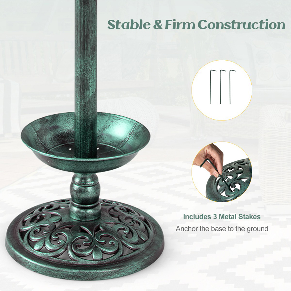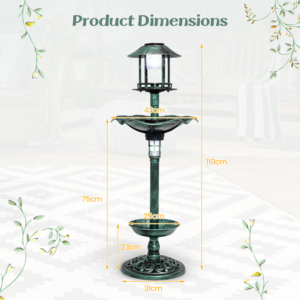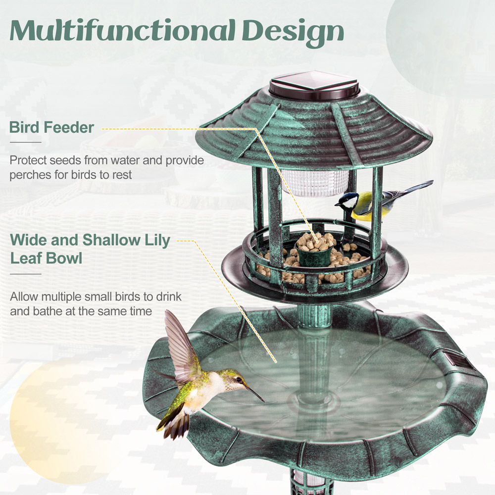 Costway Bronze Birdbath and Feeder with 2 Solar Lamp