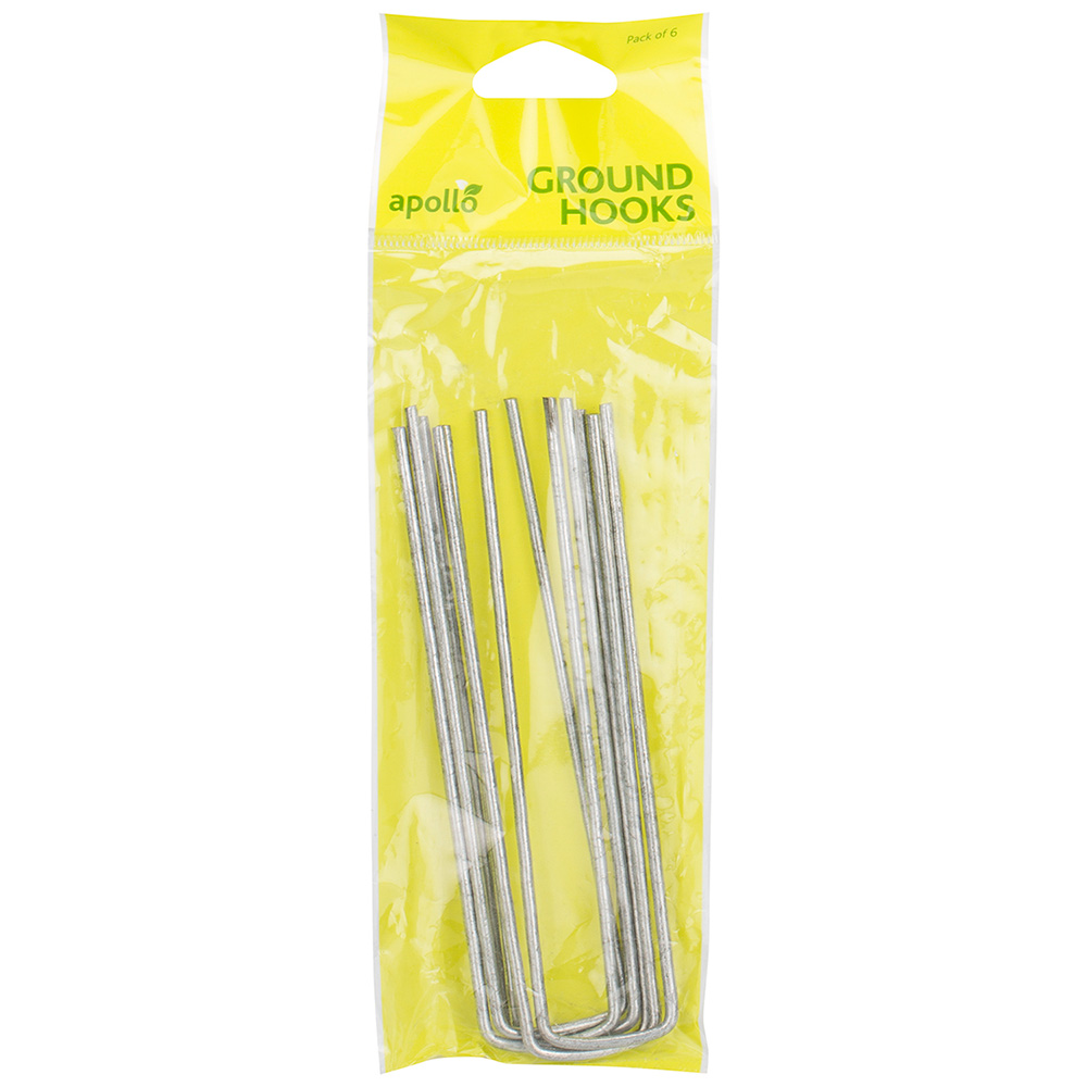 Perfect for pinning down ground cover, securing netting or any other fabrics, these Apollo Gardening Ground Hooks come in a re-sealable bag for easy storage. Made from durable material, these hooks are designed to be easy to put into the ground and secure most types of fabrics. An essential for any gardener, these are sure to be helpful around your garden. Pack of six.