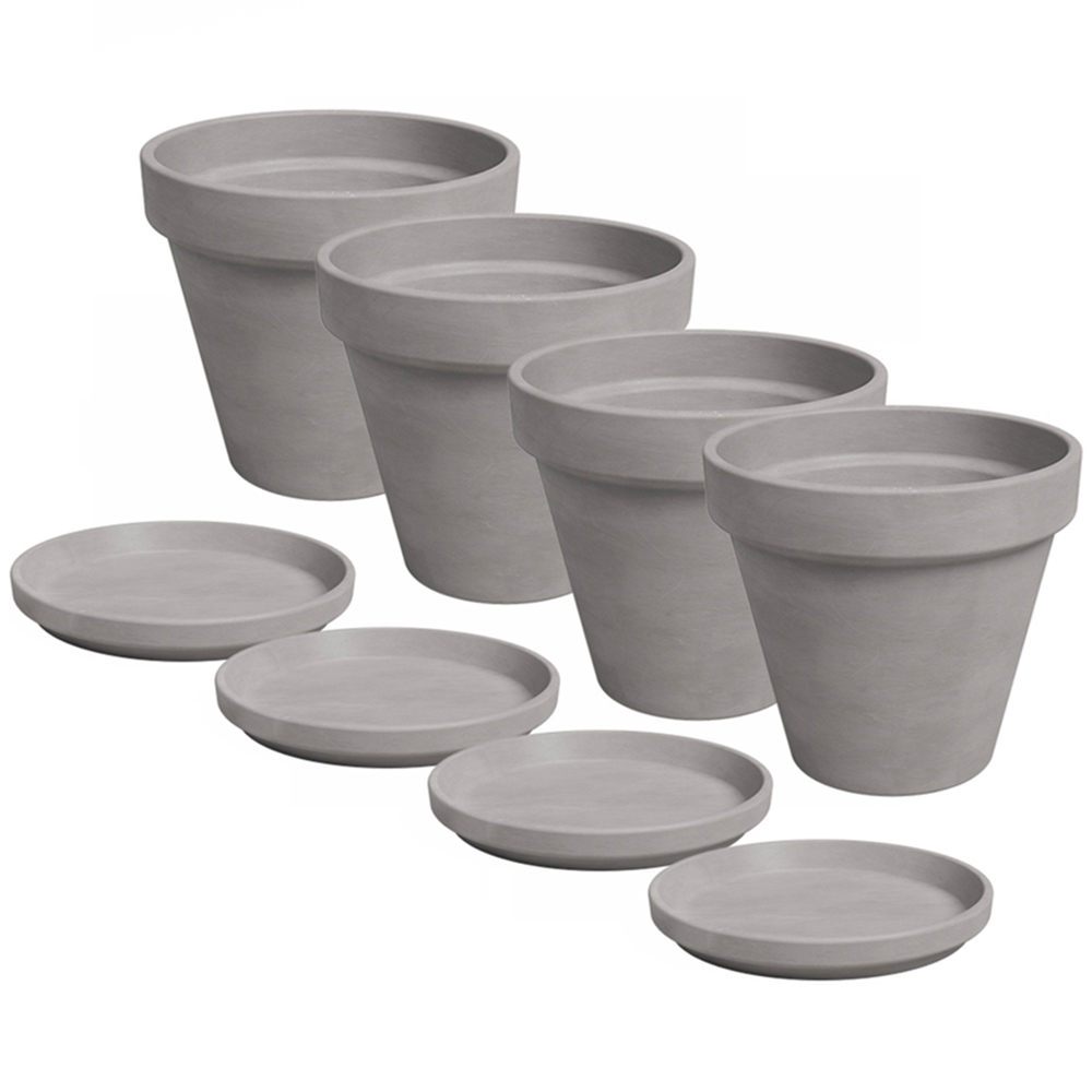Add contemporary elegance to your indoor or outdoor space with the APTA Verona Pots with Saucers in Volcano Grey. This set of four pots includes matching saucers and is crafted from frost-proof Portuguese terracotta, making it as durable as it is stylish. The light grey tone is ideal for modern decor, perfect for succulents, herbs, and small plants.