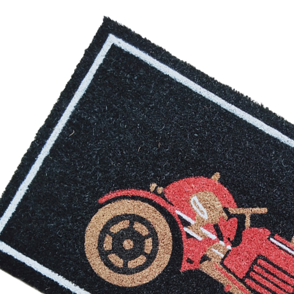 Add a pop of colour to your entryway with the Arboria Garden Decor Tractor Coir Door Mat 45 x 75cm. This mat is made from coir, making it durable and resilient. It adds a warm and homey touch to your space, welcoming the guests to a cosy atmosphere. This coir doormat includes touch bristles that clean away the dust and keep your home dirt-free. It features a red tractor on a black background, adding a vintage finish to your abode. The mat absorbs dust and debris and is ideal for your entryways.