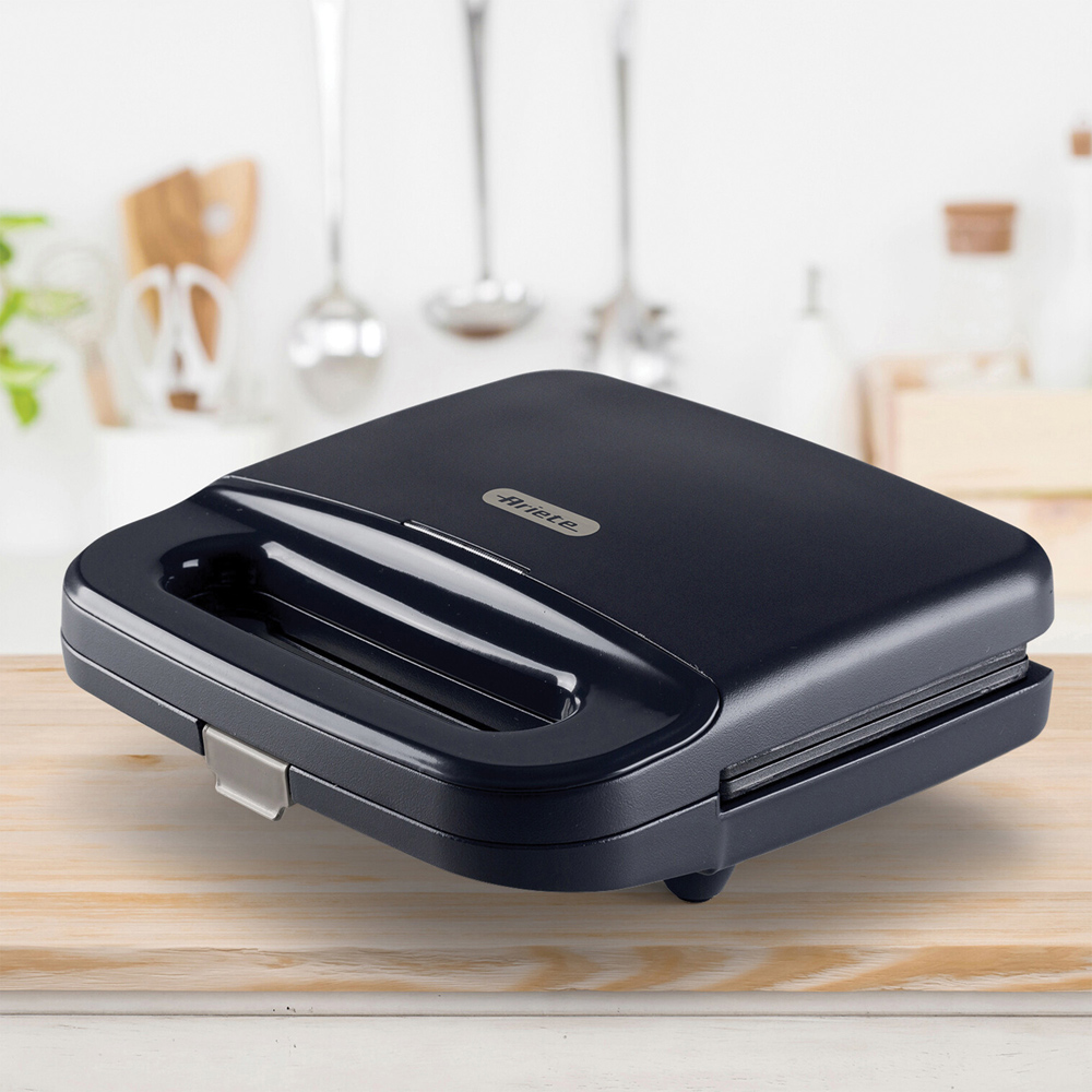 Experience the perfect crispy toastie with the AR1971 Breakfast Line Sandwich Toaster from Ariete. Designed for versatility, this sandwich maker features a cooking area of 23 x 13 cm, ideal for accommodating most slices of bread. Fill your toastie with gooey cheese, succulent meats, baked beans, or indulge in sweet treats like jam, fruit, or chocolate spread—the possibilities are endless and limited only by your creativity. The non-stick fixed grill plates make it effortless to remove your toastie once it’s cooked, and they wipe clean easily after use. Elevate your breakfast or lunchtime meals with this stylish appliance, featuring a sleek, dark grey finish that will complement any kitchen decor. If you prefer a clutter-free counter, the sandwich toaster’s upright storage position allows it to fit neatly into your kitchen cupboard when not in use.