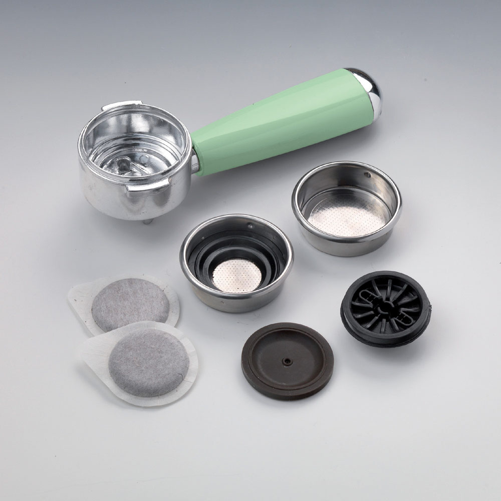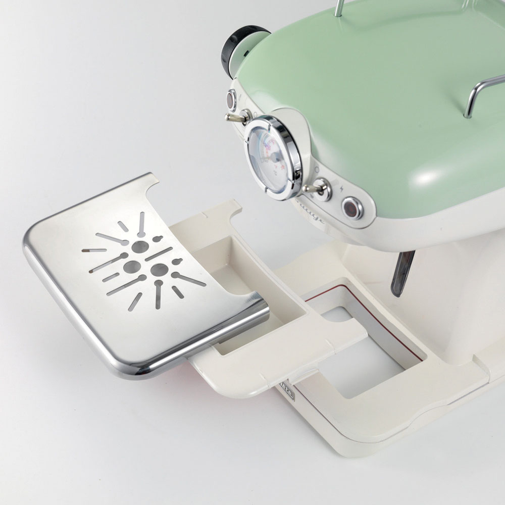 The Ariete Vintage Espresso is a coffee machine with an elegant and refined design in green, featuring the latest technology for ground coffee or ESE pods. The 900W aluminium boiler and the 15 bar pressure pump guarantee a full-bodied and creamy espresso, with an intense and fragrant aroma. The removable stainless steel drip tray and the removable 0.9L tank offer easy filling and maximum convenience. It also features an intelligent standby device that turns off the power after 30 minutes of inactivity.