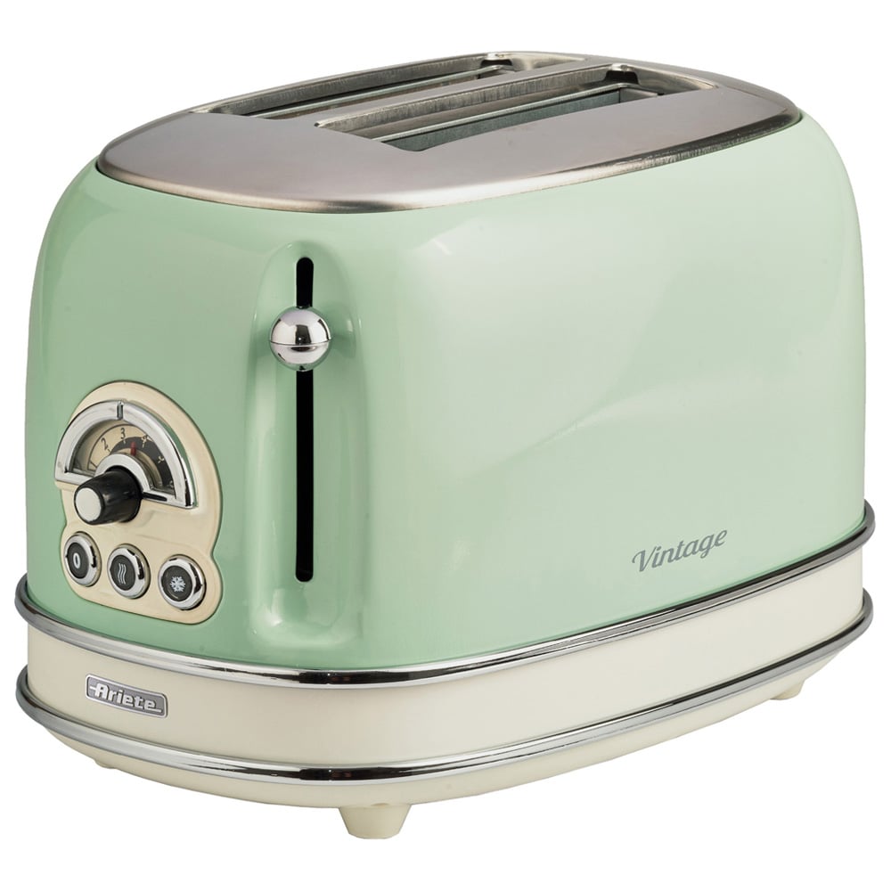 Get all the essentials you need in your kitchen sorted with Ariete Green Dome Kettle with 2 Slice Toaster. The 2–slice toaster and 1.7L dome kettle combine a classic, vintage style with modern functionality. Perfect for hosting guests – the kettle makes up to 7 cups at a time and also includes a removable, washable scale filter, ergonomic handle with soft touch finishing, and handy cool–touch surfaces. It even offers an essential auto–off system, which prevents the unit from overheating and becoming a hazard in the home. While the 2–slice vintage toaster is primed to toast bread and other breakfast items - including crumpets, bagels, buns, and more to perfection. It also has auto–eject functionality, a removable crumb tray and cool–touch sides too.