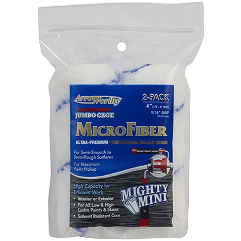 Transform your space effortlessly with the ArroWorthy 4 x 9/16 inch Nap Jumbo Microfiber Roller Sleeve. This 4-inch jumbo roller sleeve features a 9/16 inch nap, making it perfect for a variety of painting projects. Crafted from a special blend of high-capacity, non-shedding European woven fabric, this roller sleeve is designed to deliver smooth, even coverage with all paints and stains, including the latest low VOC coatings. The non-shedding fabric guarantees a lint-free finish, perfect for both professional and DIY enthusiasts. Pack of 2.