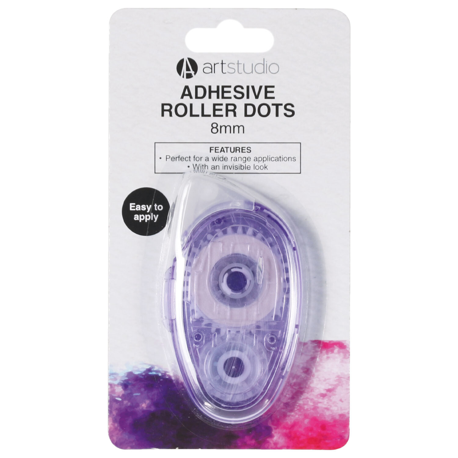Quick and easy to apply, the Art Studio Adhesive Roller Dots 8mm allows you to add a variety of embellishments to your crafting projects. This dispenser releases super sticky double-sided adhesive dots onto a variety of surfaces, including paper, plastic, wood and glass.