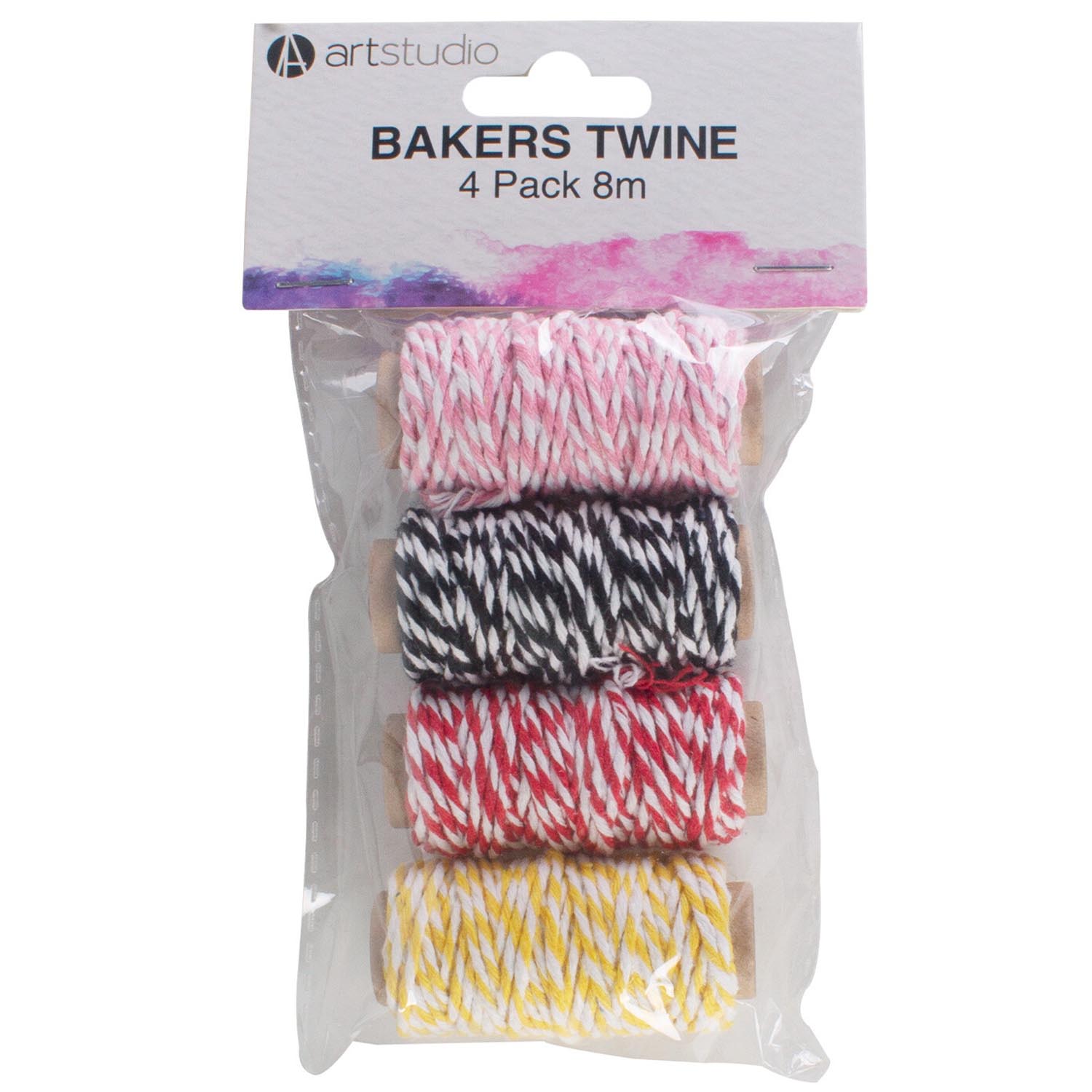 Durable and colourful, this Art Studio Bakers Twine 8m is a versatile addition to your craft kit. Perfect for card making, scrapbooking, embellishing gifts and more, it comes with four spools of twine in pink, black, red and yellow.