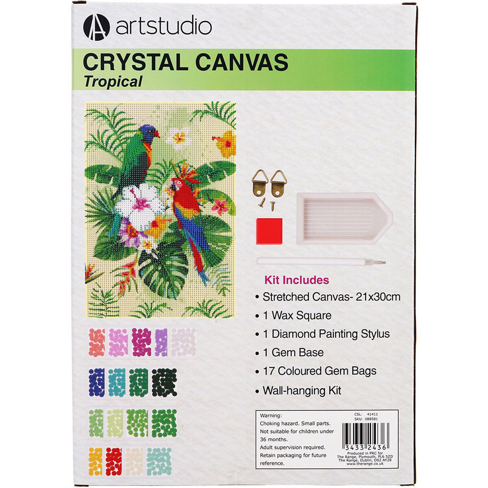 Create a dazzling piece of art with this Art Studio Crystal Canvas. Ideal for beginners and avid crafters alike, it's great for anyone looking to pick up a new hobby or unwind for an afternoon. With everything you need included in this set, you can get started right away on this unique craft, which is a soothing mix of paint-by-numbers, cross-stitch and mosaics.