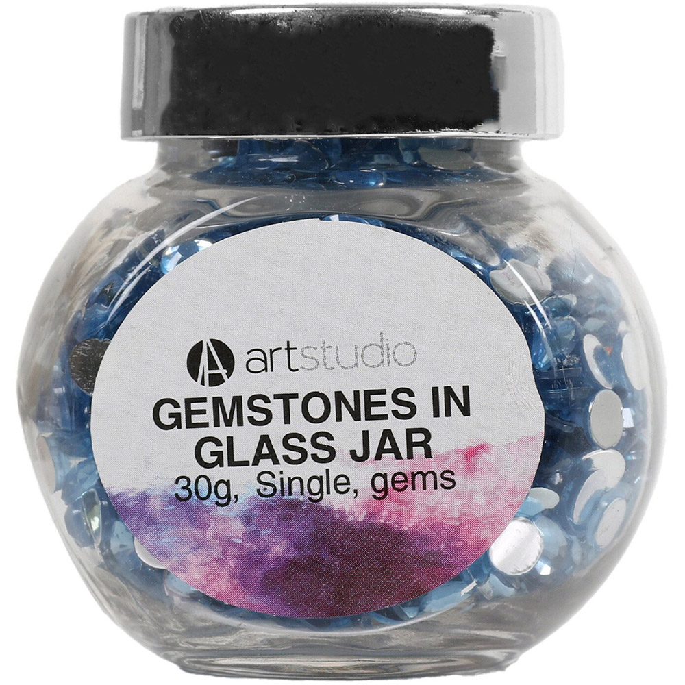 Create stunning pieces of art or decorate your crafts with this set of Art Studio Gemstones in a Glass Jar. These embellishments come in one of six assorted colours, kept in an adorable glass jar which can be reused for just about anything! Collect them all for a truly limitless and dazzling crafting experience.