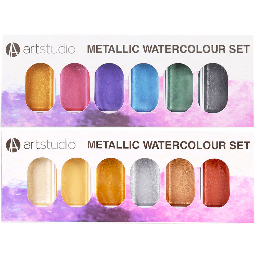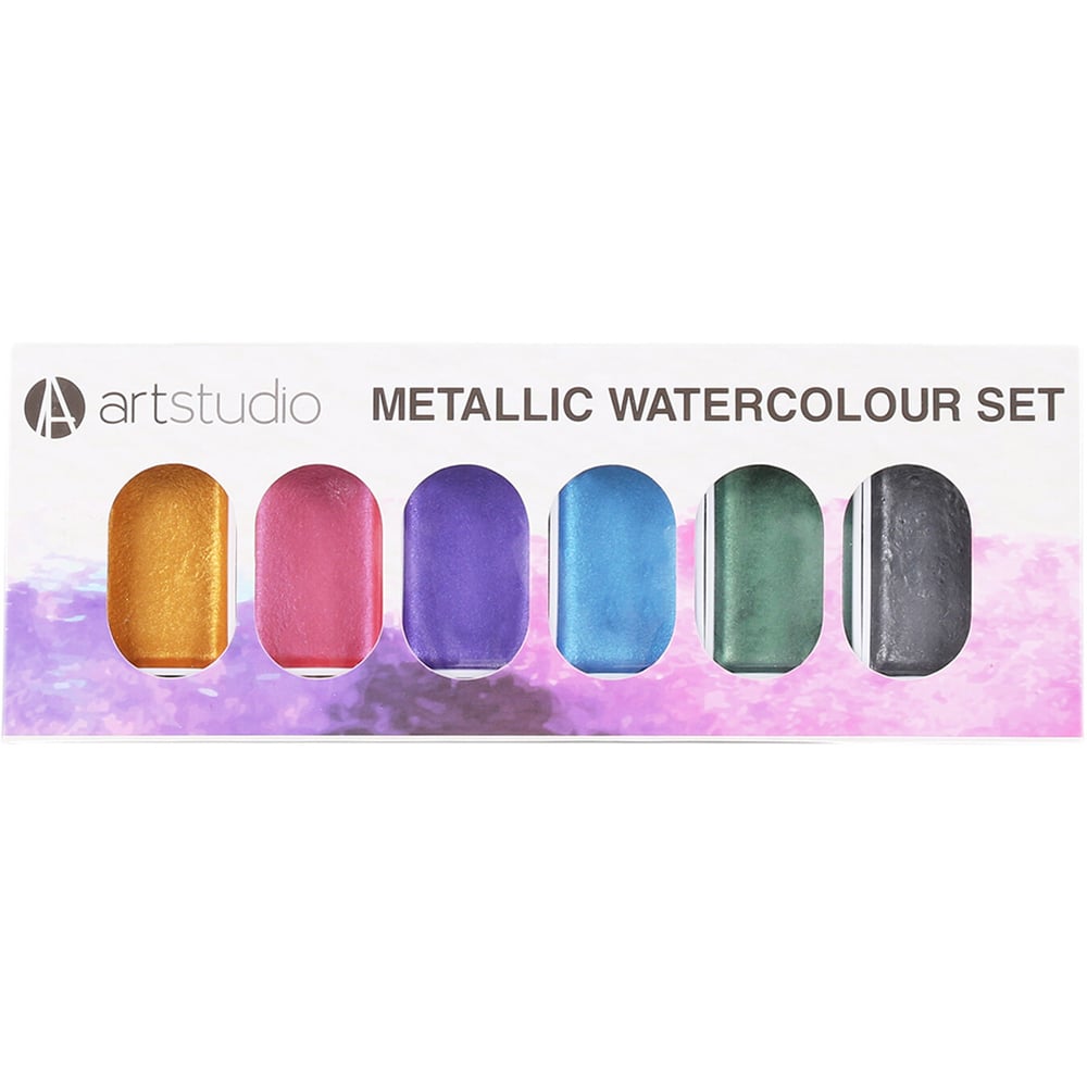 This Art Studio Watercolour Metallic Painting Set is perfect for adding a shimmering touch to your artwork. Available in an assortment of colours, you will receive either a neutral palette or a bright palette. With six colours included in each palette, this crafting must-have is excellent for painting in scrapbooks, making homemade cards and more.