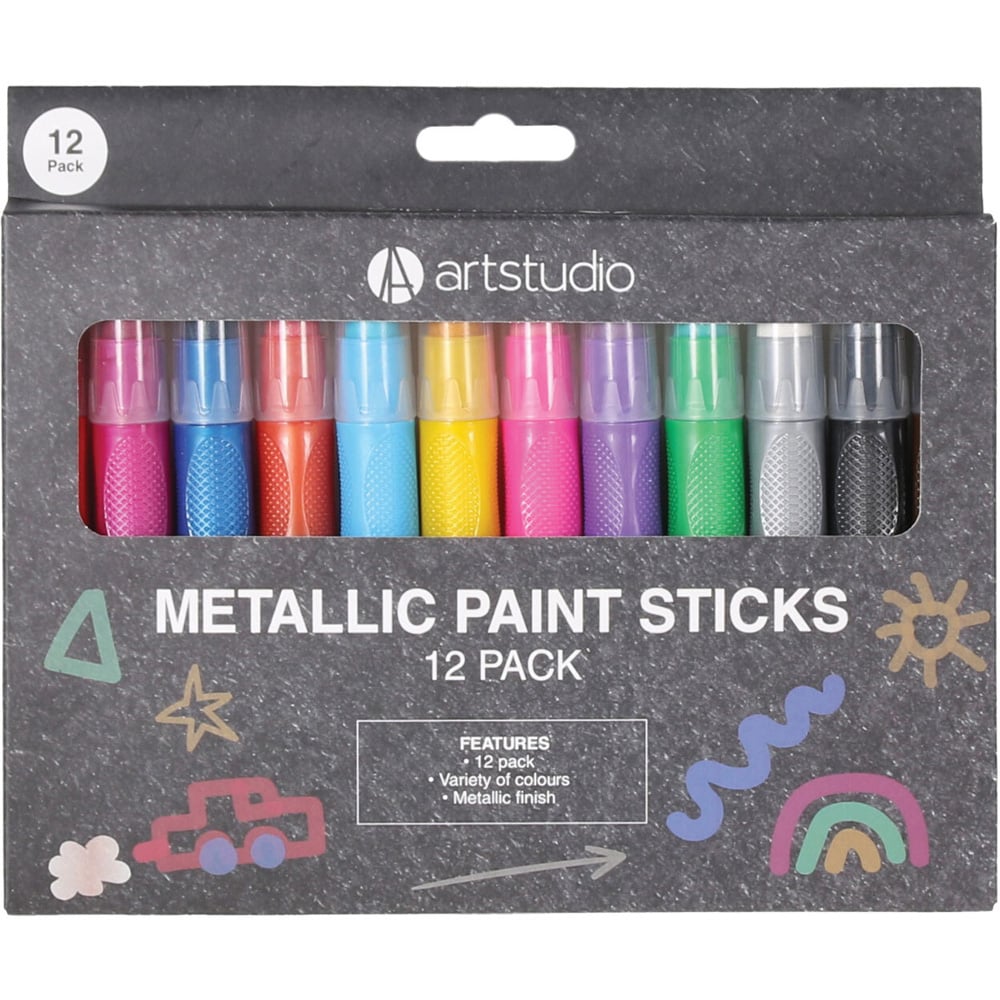 Excellent for kids, this Pack of 12 Art Studio Paint Sticks is an exciting and less messy way to paint. Available with either a metallic or bright finish, these fun paint sticks come in a rotating tube for soft and smooth painting.