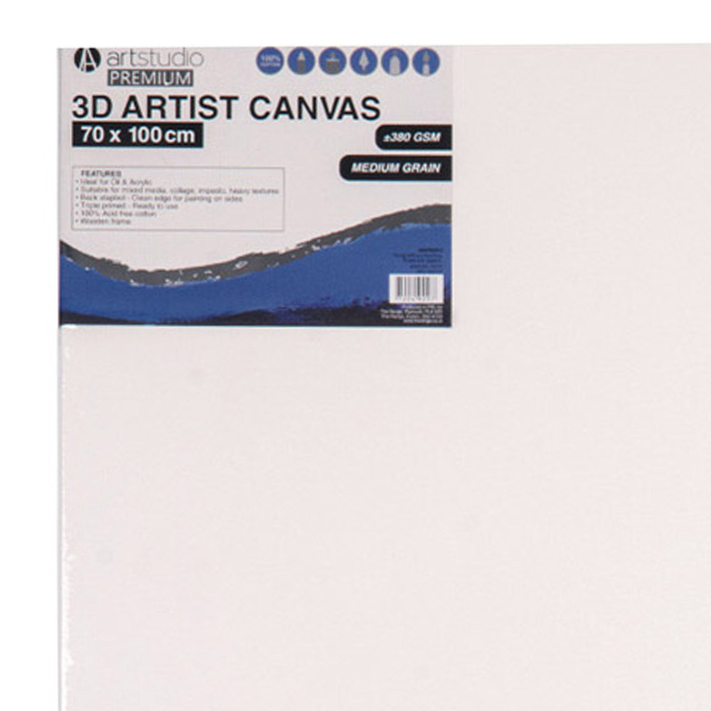 Made from 100% acid free cotton, the Art Studio 3D Artist Canvas is triple primed and ready to use. They are perfect for oil and acrylic paints, mixed medias and other heavy textures. Back stapled to provide a clean edge for painting on the side, this canvas is perfect for students, professionals and hobbyists.
