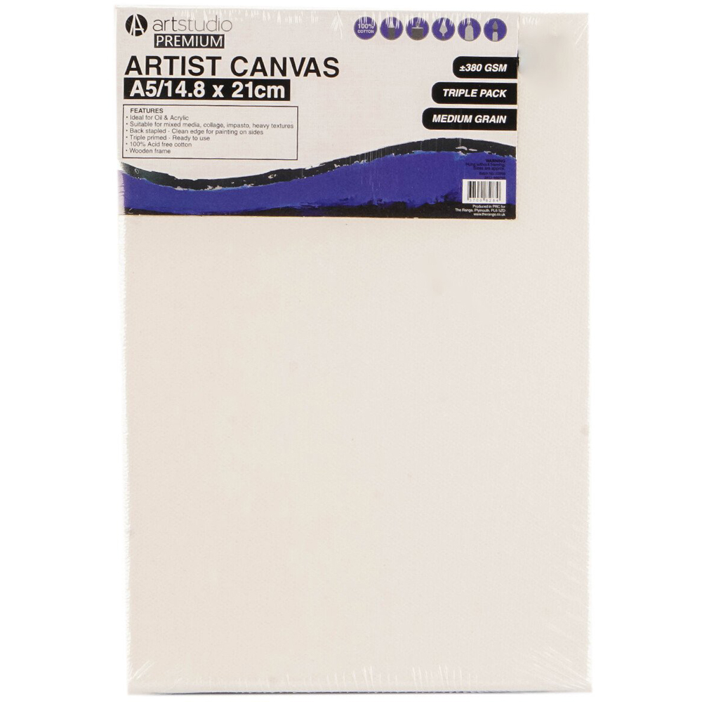 Excellent for students, professionals and hobbyists alike, the Pack of Three Art Studio Artist Canvases are perfect for creating great quality paintings. With a medium grain 380gsm finish, these stretched canvases are created from 100% natural cotton and are perfect for a variety of painting mediums including oil and acrylic.