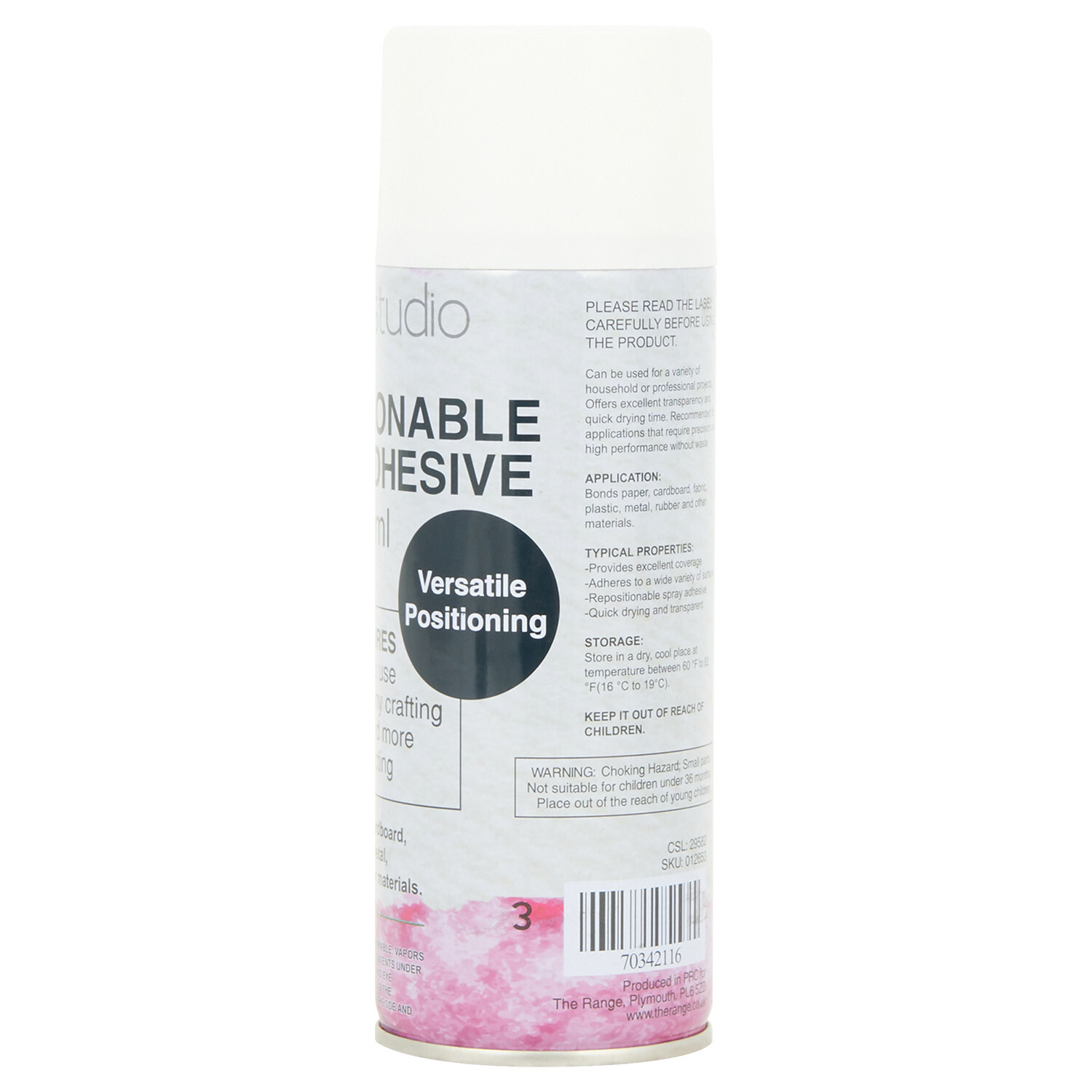 This Art Studio Repositionable Spray Adhesive is a versatile and easy-to-use addition to your craft collection. Ideal for a plethora of projects, it bonds paper, cardboard, fabric, plastic, metal, rubber and more, and can be repositioned to make sure you get everything just where you need it.