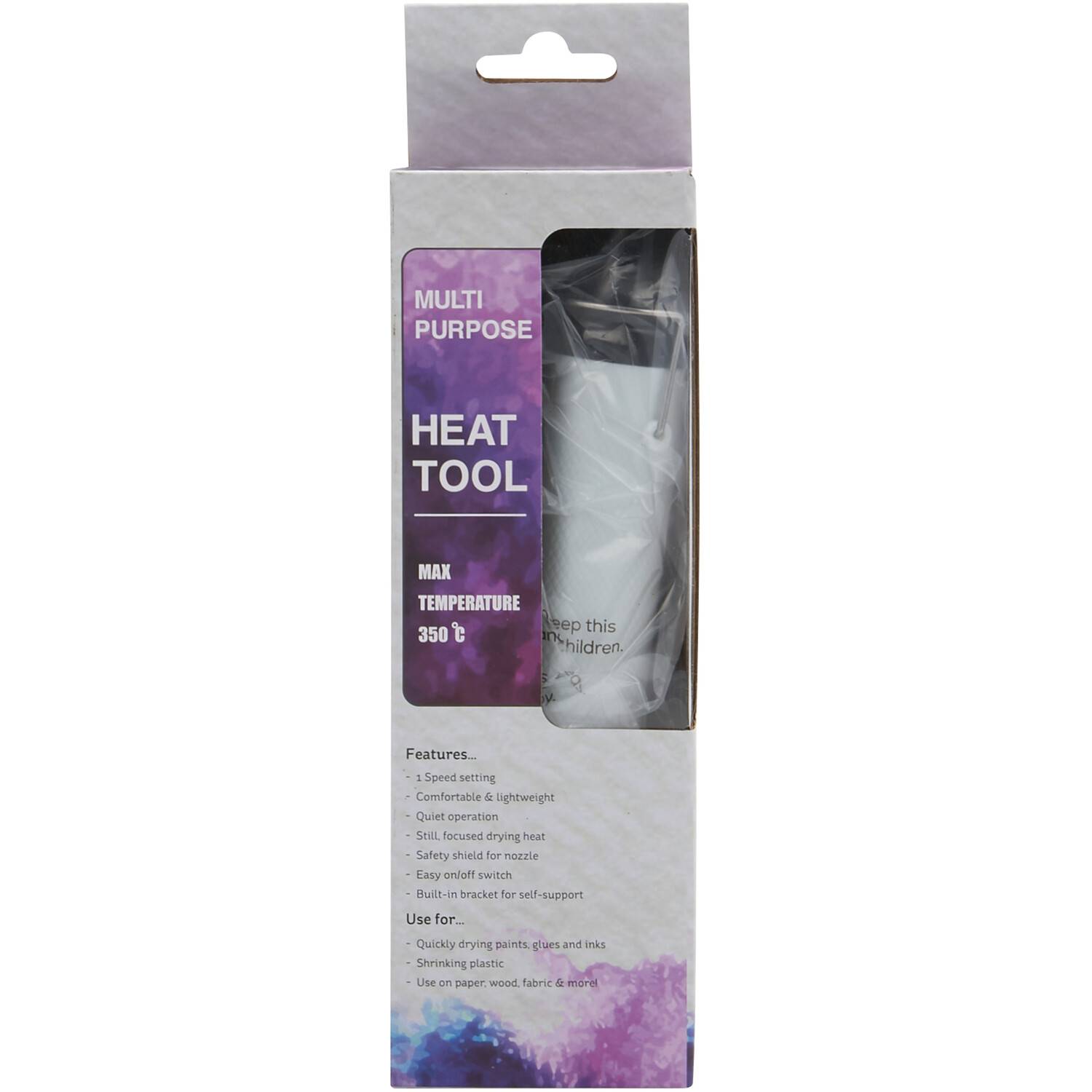 This Multi Purpose Heat Tool is ideal for a wide variety of arts and crafts projects. This hot air gun can be used for quickly drying paints, glues and inks, shrinking plastic, and can be used on paper, wood, fabric and more. It has one speed setting and quiet operation, offering comfortable and lightweight usage. There is an easy on/off switch as well as a safety shield for the nozzle.