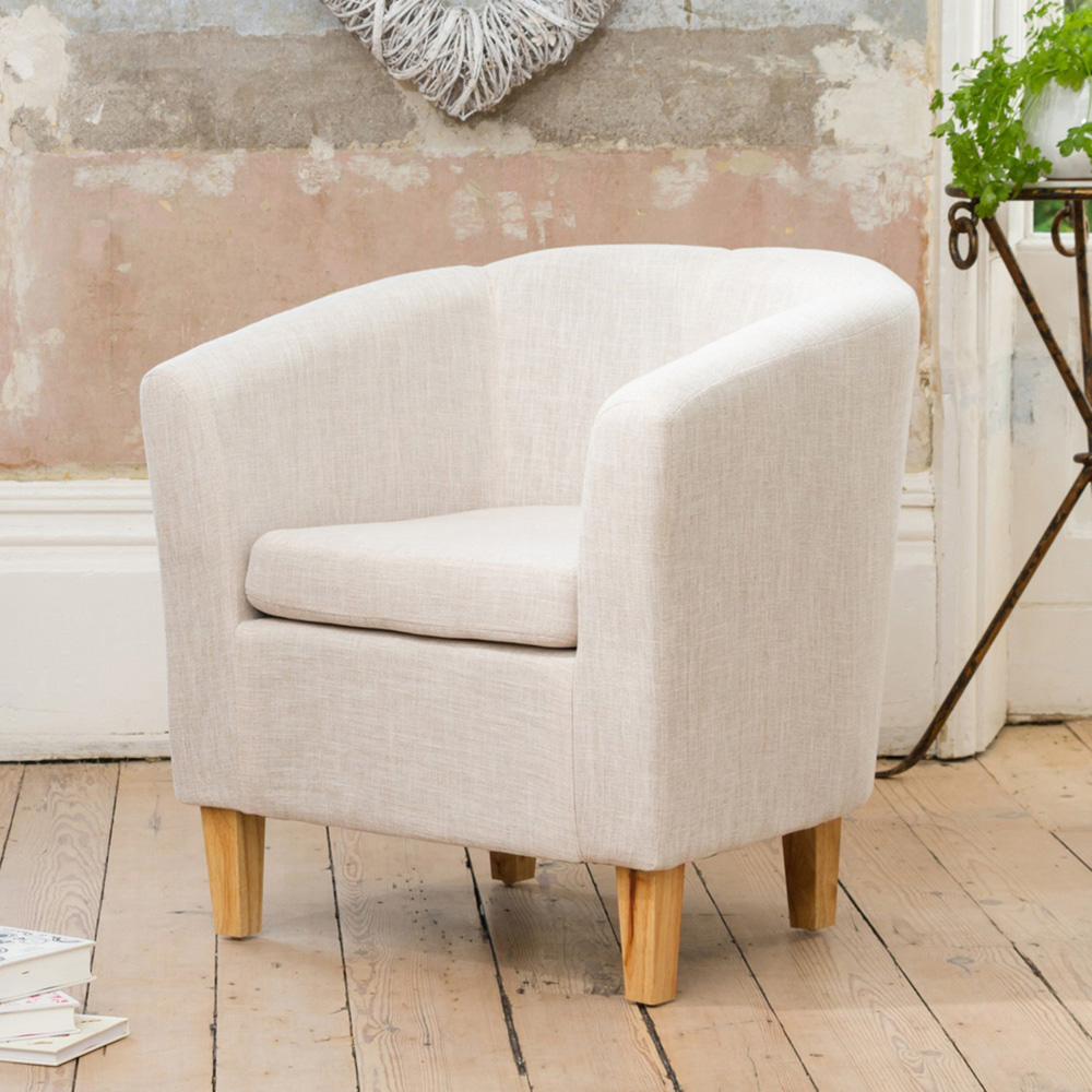 Elevate the style quotient of your living space with the Artemis Home Alderwood Beige Hessian Tub Chair. This chair provides the perfect combination of comfort, style and luxury, making it a great accessory to amp up even the simplest of interior spaces. It has a high-quality, durable wooden frame that's built to last and also a convenient removable foam cushion that's plush and comfortable. The long pine-coloured legs keep the chair sturdy and stable, adding a touch of sophistication and class to the piece. The textured fabric is hard-wearing, so you can be sure it won't fall apart easily and will give you long-lasting comfort and relaxation.