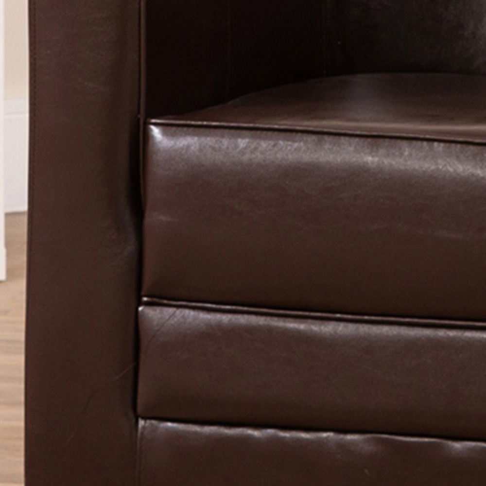 Infuse style and comfort into your space with this Artemis Home Aspen Brown Faux Leather Tub Chair. This stylish and contemporary accent chair is perfect for use in both your home and workplace. Ensuring stability, the chunky design of the base and small feet are designed to put lesser pressure on the legs of the chair. Also, the chair is covered in an easy-to-maintain and durable faux leather material.