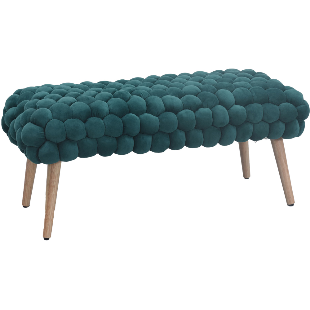 Add a touch of flair to your home with the Artemis Home Cushla Dark Green Bubbly Velvet Large Footstool. Wrapped in a soft velvet upholstery, this modern footstool brings luxury and warmth to any room. The light Scandi-style wooden legs offer a minimalist charm, effortlessly blending with both contemporary and classic decor. Hand-finished with charming bobbles, it is a unique piece that adds character to any space. Perfect for resting your feet, as an extra seat, or even a stylish accent, this compact footstool fits seamlessly into any room, from the living room to the bedroom or home office.