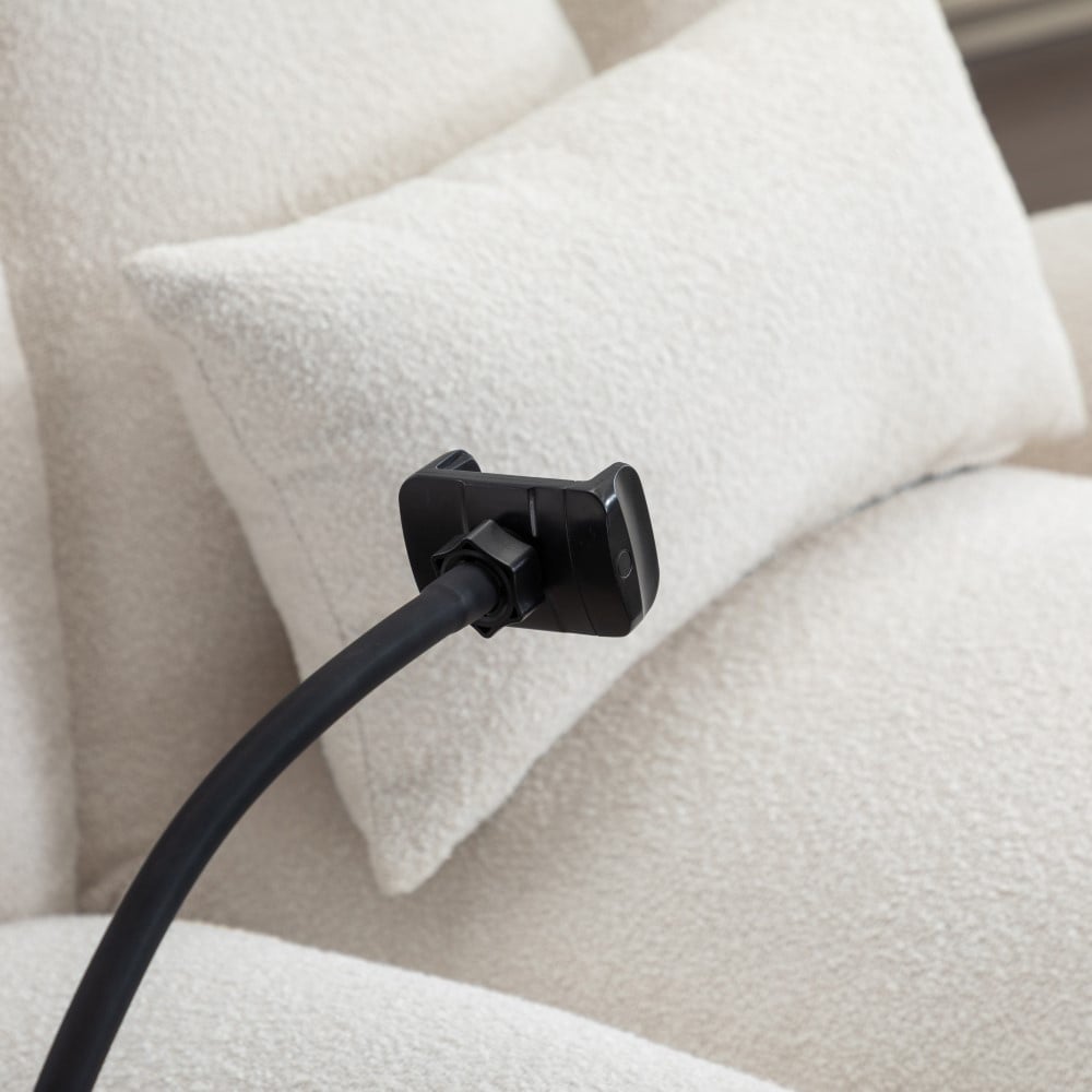 Enhance your days of rest and relaxation with the Artemis Home Fallon Cream Boucle Swivel Manual Recliner Chair. This swivel-based recliner has soft and spacious coil-sprung foam seating that is upholstered with beautiful high-quality boucle fabric, giving it a luxurious feel. The built-in phone holder is an added advantage, giving you ease of access and allowing you to read e-books and use your phone with minimal hassle. The wooden frame provides sturdiness and durability. This chair is ideal for making a style statement all while being wrapped in utter comfort and luxury. We provide an efficient delivery and assembly service to ensure a convenient and hassle-free setup.