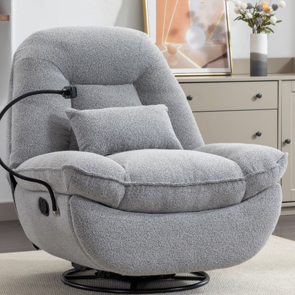Enhance your days of rest and relaxation with the Artemis Home Fallon Light Grey Boucle Swivel Manual Recliner Chair. This swivel-based recliner has soft and spacious coil-sprung foam seating that is upholstered with beautiful high-quality boucle fabric, giving it a luxurious feel. The built-in phone holder is an added advantage, giving you ease of access and allowing you to read e-books and use your phone with minimal hassle. The wooden frame provides sturdiness and durability. This chair is ideal for making a style statement all while being wrapped in utter comfort and luxury. We provide an efficient delivery and assembly service to ensure a convenient and hassle-free setup.