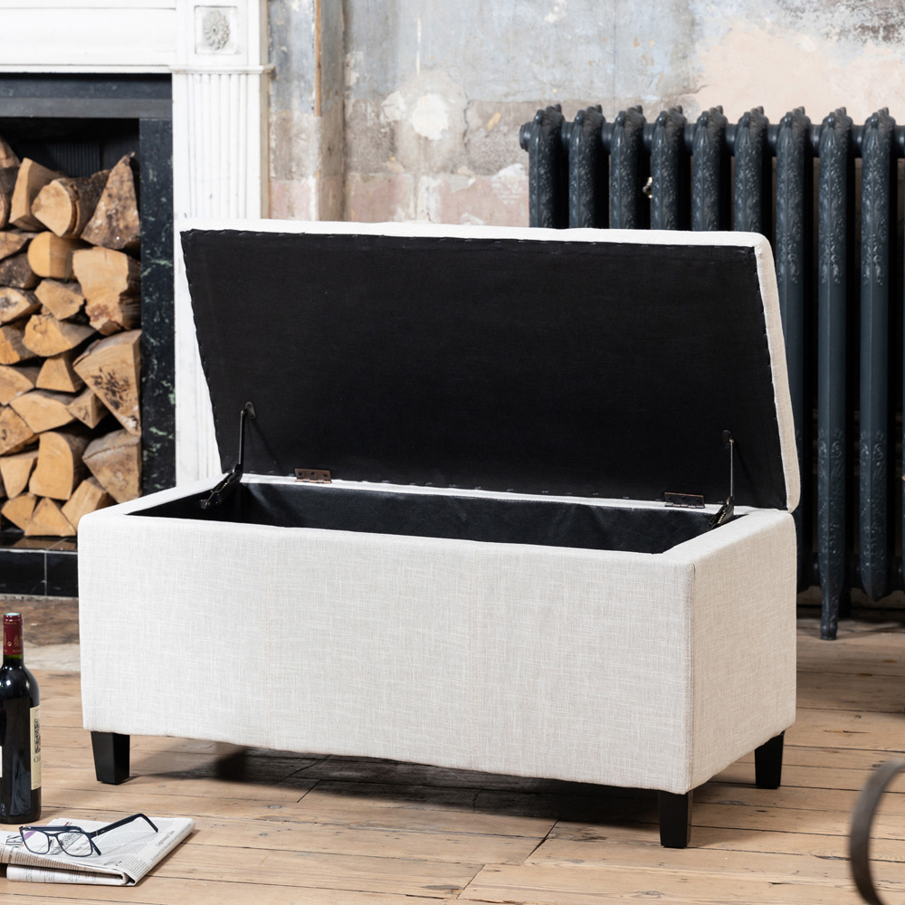 Upgrade your storage space with the Artemis Home Henbury Beige Fabric Storage Ottoman, where style meets functionality in a harmonious blend of space and strength. This large and spacious storage ottoman is meticulously designed to cater to your storage needs while adding a pop of vibrancy to your decor. Built on a robust wooden frame, the Henbury Storage Ottoman promises durability and stability, providing a reliable storage solution. The exterior is adorned with strong textured fabric, ensuring longevity and adding a touch of sophistication to your living space. The vibrant colour seamlessly suits your style and complements your interior decor. More than just a storage solution, this ottoman is a statement piece that enhances the visual appeal of your room. The sturdy metal hinge allows easy access and organization of your belongings, while the strong hinge mechanism ensures smooth operation. The ottoman stands proudly on block feet, adding a modern touch to your space. Perfect for neatly tucking away bedding or providing an organised haven for children’s toys, the Henbury Storage Ottoman maximises your storage space. It is a perfect marriage of form and function, transforming your living space with vibrancy, durability, and ample storage. This stylish and practical storage solution effortlessly meets your lifestyle needs.