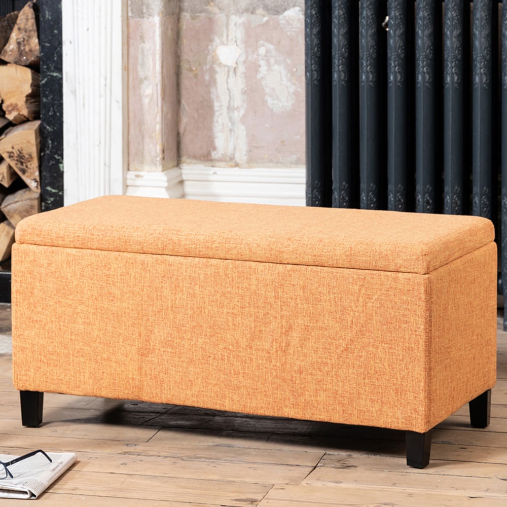 Upgrade your storage space with the Artemis Home Henbury Orange Fabric Storage Ottoman, where style meets functionality in a harmonious blend of space and strength. This large and spacious storage ottoman is meticulously designed to cater to your storage needs while adding a pop of vibrancy to your decor. Built on a robust wooden frame, the Henbury Storage Ottoman promises durability and stability, providing a reliable storage solution. The exterior is adorned with strong textured fabric, ensuring longevity and adding a touch of sophistication to your living space. The vibrant colour seamlessly suits your style and complements your interior decor. More than just a storage solution, this ottoman is a statement piece that enhances the visual appeal of your room. The sturdy metal hinge allows easy access and organization of your belongings, while the strong hinge mechanism ensures smooth operation. The ottoman stands proudly on block feet, adding a modern touch to your space. Perfect for neatly tucking away bedding or providing an organised haven for children’s toys, the Henbury Storage Ottoman maximises your storage space. It is a perfect marriage of form and function, transforming your living space with vibrancy, durability, and ample storage. This stylish and practical storage solution effortlessly meets your lifestyle needs.