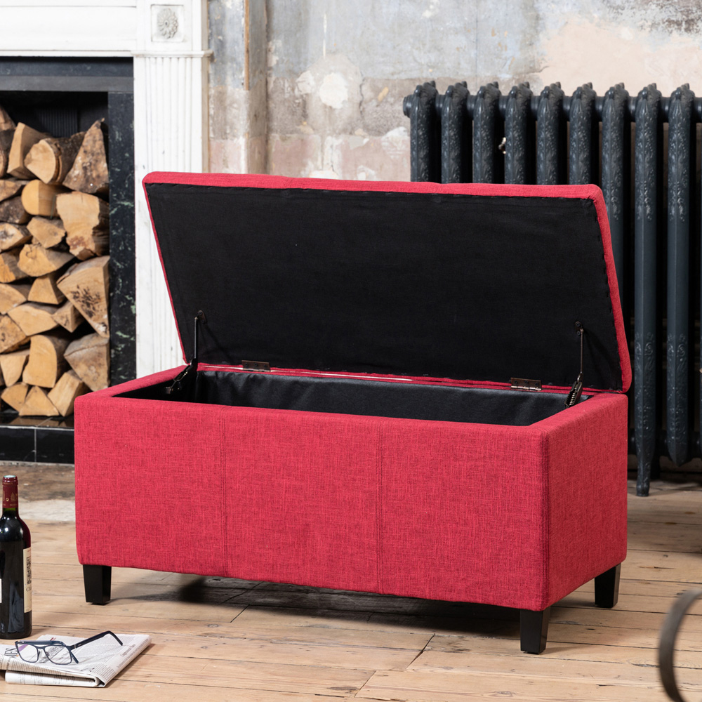 Upgrade your storage space with the Artemis Home Henbury Red Fabric Storage Ottoman, where style meets functionality in a harmonious blend of space and strength. This large and spacious storage ottoman is meticulously designed to cater to your storage needs while adding a pop of vibrancy to your decor. Built on a robust wooden frame, the Henbury Storage Ottoman promises durability and stability, providing a reliable storage solution. The exterior is adorned with strong textured fabric, ensuring longevity and adding a touch of sophistication to your living space. The vibrant colour seamlessly suits your style and complements your interior decor. More than just a storage solution, this ottoman is a statement piece that enhances the visual appeal of your room. The sturdy metal hinge allows easy access and organization of your belongings, while the strong hinge mechanism ensures smooth operation. The ottoman stands proudly on block feet, adding a modern touch to your space. Perfect for neatly tucking away bedding or providing an organised haven for children’s toys, the Henbury Storage Ottoman maximises your storage space. It is a perfect marriage of form and function, transforming your living space with vibrancy, durability, and ample storage. This stylish and practical storage solution effortlessly meets your lifestyle needs.