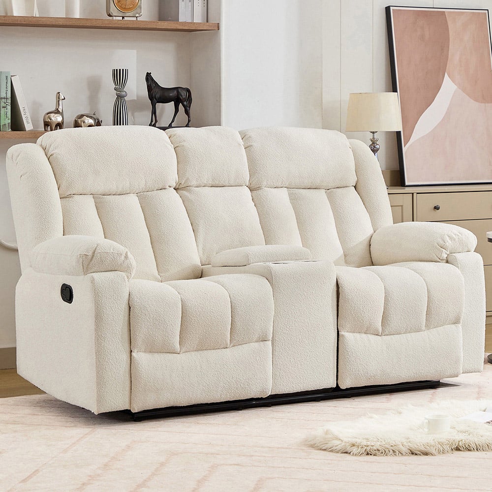 The Lovell 2 Seat Recliner Sofa with Central Console combines luxurious comfort with practical design, making it a stylish and functional addition to any home. This manual recliner features two independently reclining seats, allowing each user to find their perfect position for relaxation. Upholstered in a soft, textured boucle fabric, it offers a cosy yet contemporary feel. Built on a solid hardwood frame, the Lovell sofa ensures lasting durability and support. The central console provides convenient storage and built-in cup holders, keeping drinks and essentials close at hand. With its perfect blend of premium materials and thoughtful features, this recliner sofa is ideal for those seeking both comfort and everyday practicality.