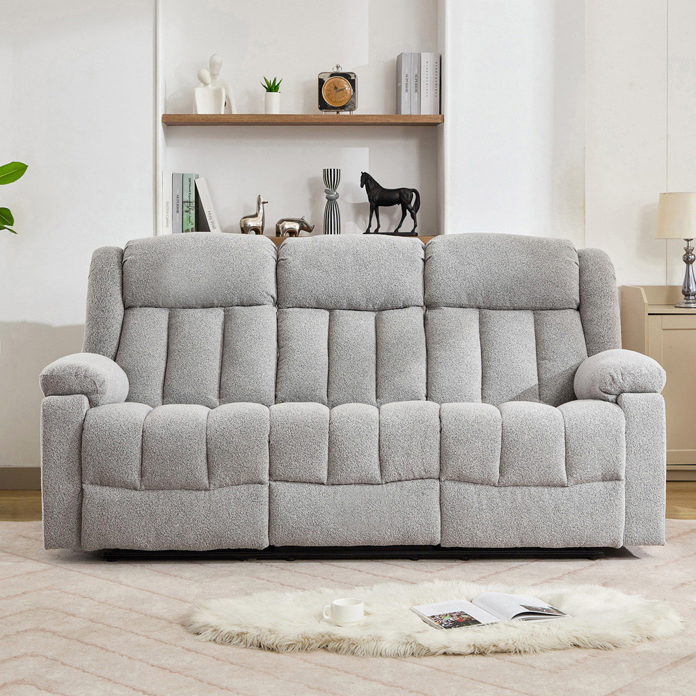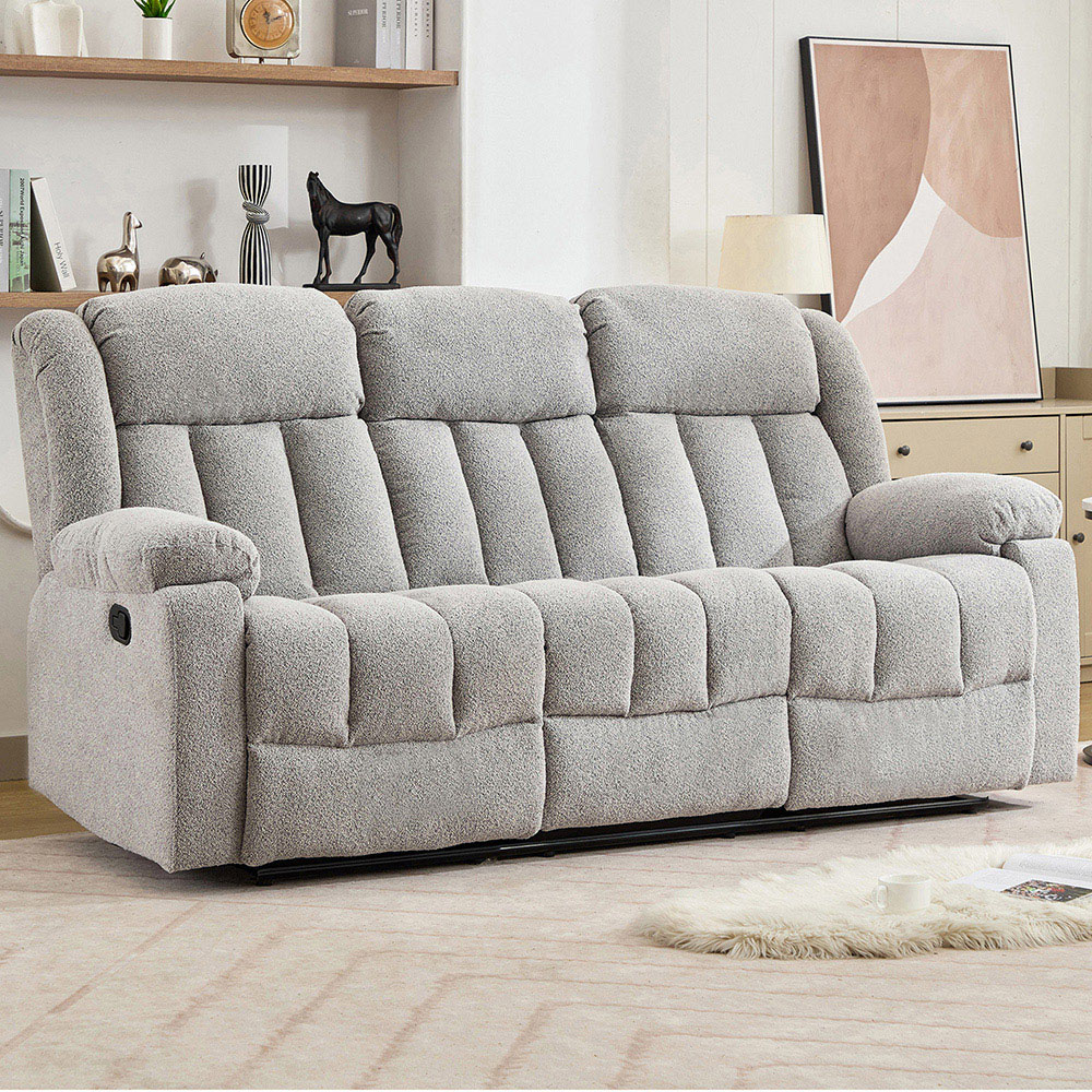 The Lovell 3 Seat Recliner Sofa with Central Console offers the perfect combination of style, comfort, and practicality, making it an excellent choice for any modern home. This manual recliner features three independently reclining seats, allowing each person to find their ideal position for ultimate relaxation. Upholstered in a soft, textured boucle fabric, it adds a cosy yet contemporary touch to any living space. Built on a solid hardwood frame, the Lovell sofa provides exceptional durability and support for everyday use. The central console offers convenient storage and built-in cup holders, keeping drinks and essentials within easy reach. With its premium materials and thoughtful design, this recliner sofa is the ideal blend of luxury and functionality.