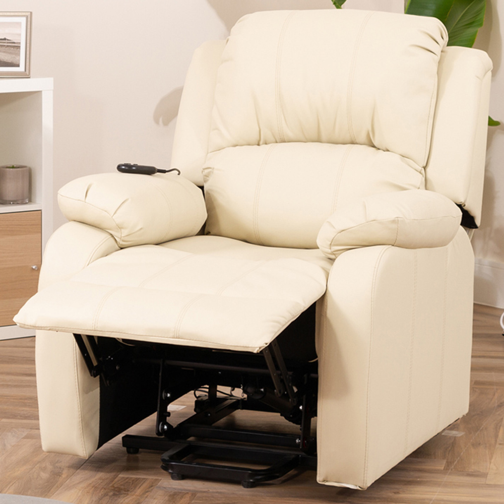 Add some extra comfort to your life with the Artemis Home Northfield Cream Dual Motor Massage and Heat Riser Recliner Chair. This chair is great if you need to wind down after a long day or even for help with mobility. The solid hardwood frame and sturdy recline mechanism make it durable and capable of supporting a weight of up to 130kgs. The electrically operated rise and recline functions can be adjusted at your preferred position. The dual motor allows you to operate the backrest and footrest independently of each other, making this a convenient option for a variety of uses. The massage points in the seat, lower and upper back, coupled with the warming function in the lumbar area, make this chair your one-stop for an evening of blissful relaxation. Our efficient delivery and assembly will ensure that you experience a hassle-free setup.