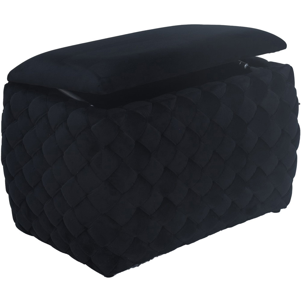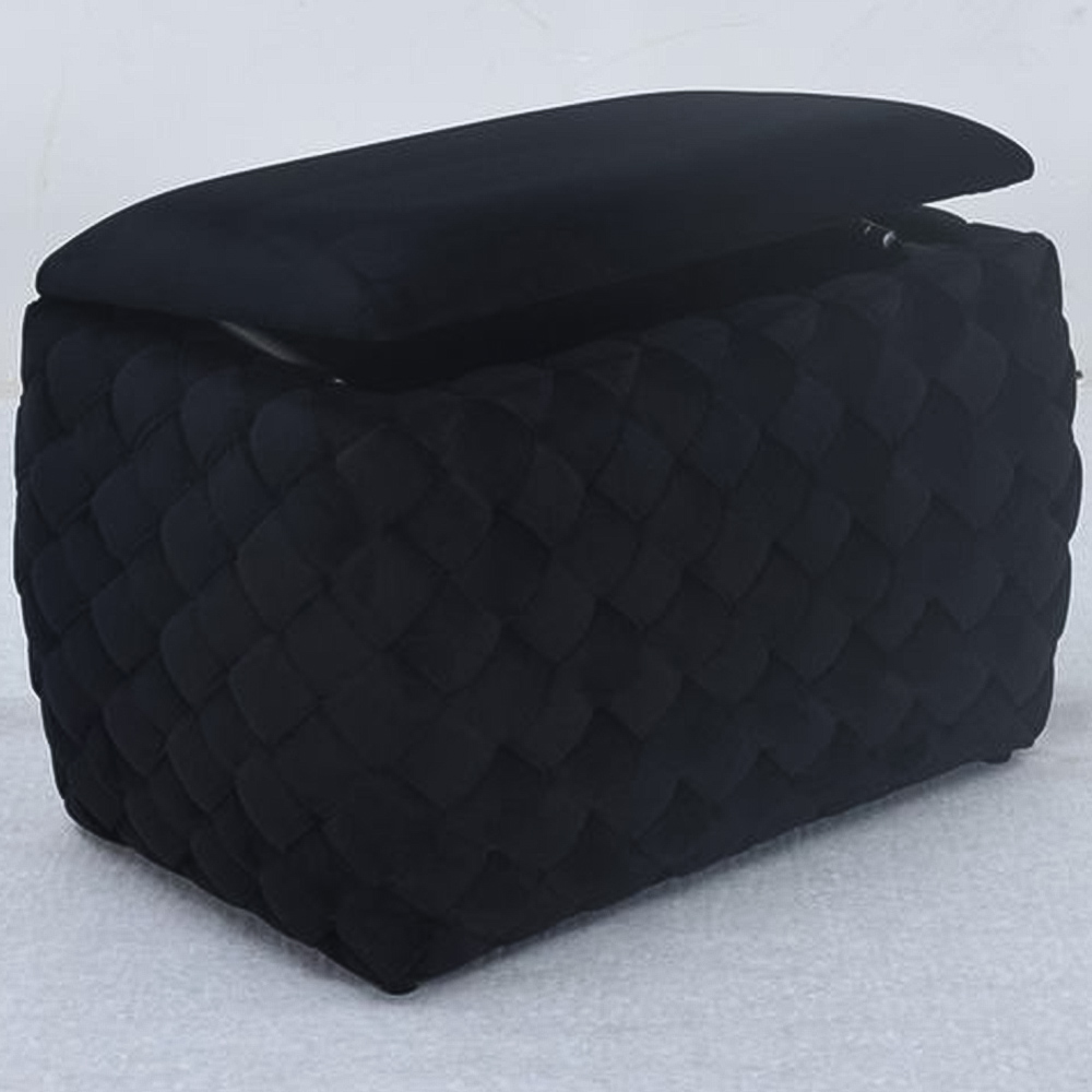 Enhance your living space with the Artemis Home Plumeo Black Velvet Storage Ottoman, a chic and functional addition to your home decor. This stylish storage solution features luxurious velvet upholstery that adds a touch of elegance to any room. The sides boast an intricate woven finish, creating a unique texture, while the smooth velvet top offers a sleek contrast. The ottoman’s hinged lid provides easy access to its spacious interior, perfect for storing blankets, cushions, and other essentials, keeping your space tidy. Its compact design makes it versatile for the living room, bedroom, or hallway use. The vibrant and aesthetic hue of the Plumeo Velvet Storage Ottoman allows you to personalize your space with a pop of colour, whether you prefer bold statements or subtle sophistication. This ottoman is built with durability, combining beauty and practicality and ensuring it stands the test of time.