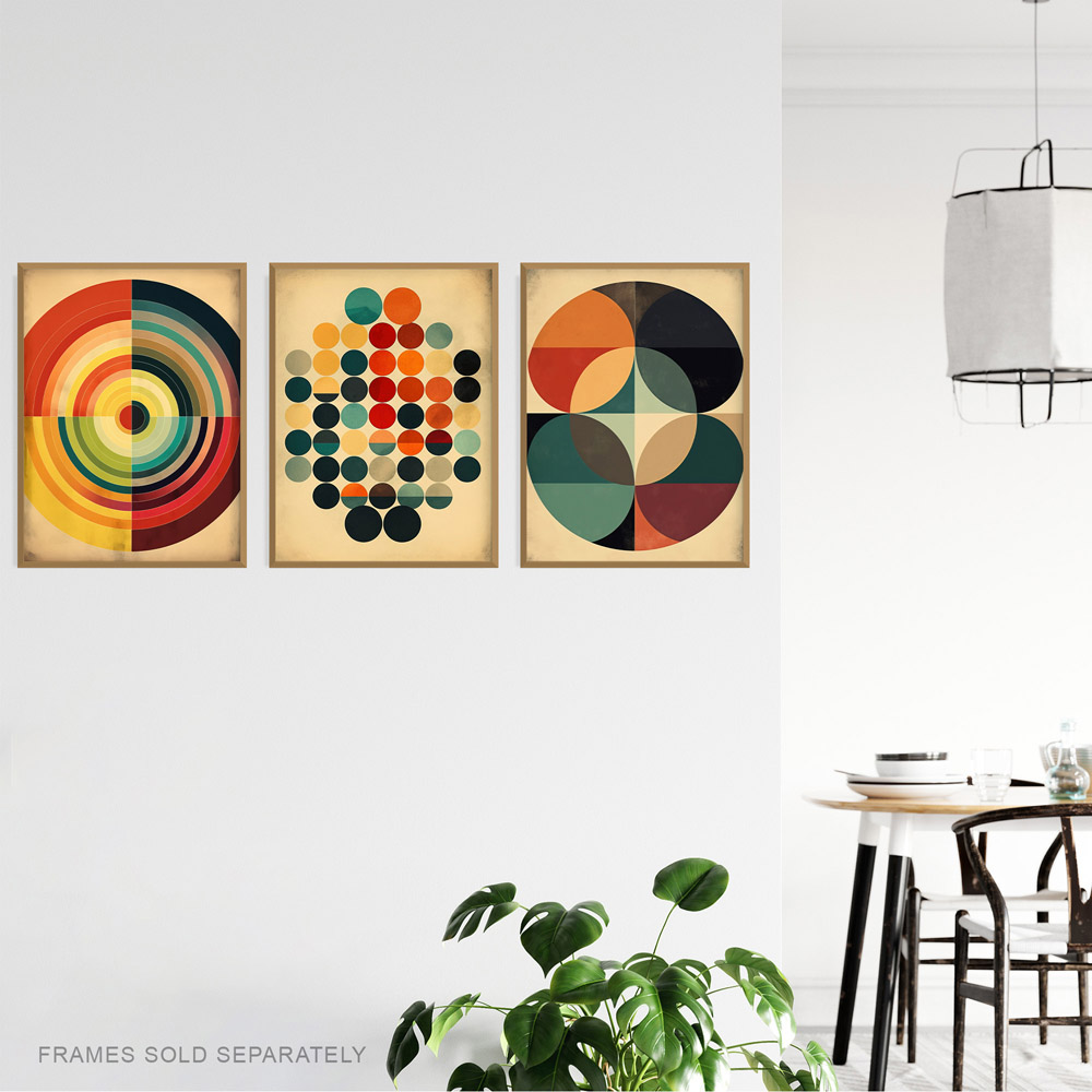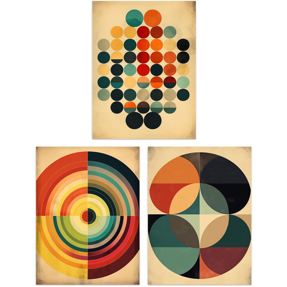 Elevate your living space with the Set of 3 Bauhaus Mid Century Modern Abstract Circles Wall Art, perfectly sized at 12x16 inches to make a sophisticated statement. These unframed prints blend the iconic Bauhaus style with abstract circles, creating a striking visual impact in any room. Crafted on thick, luxurious art paper, each print promises both quality and elegance, ready to be framed to match your unique decor. The careful packaging ensures they arrive in pristine condition, ready to transform your living room with a touch of mid-century modern flair.