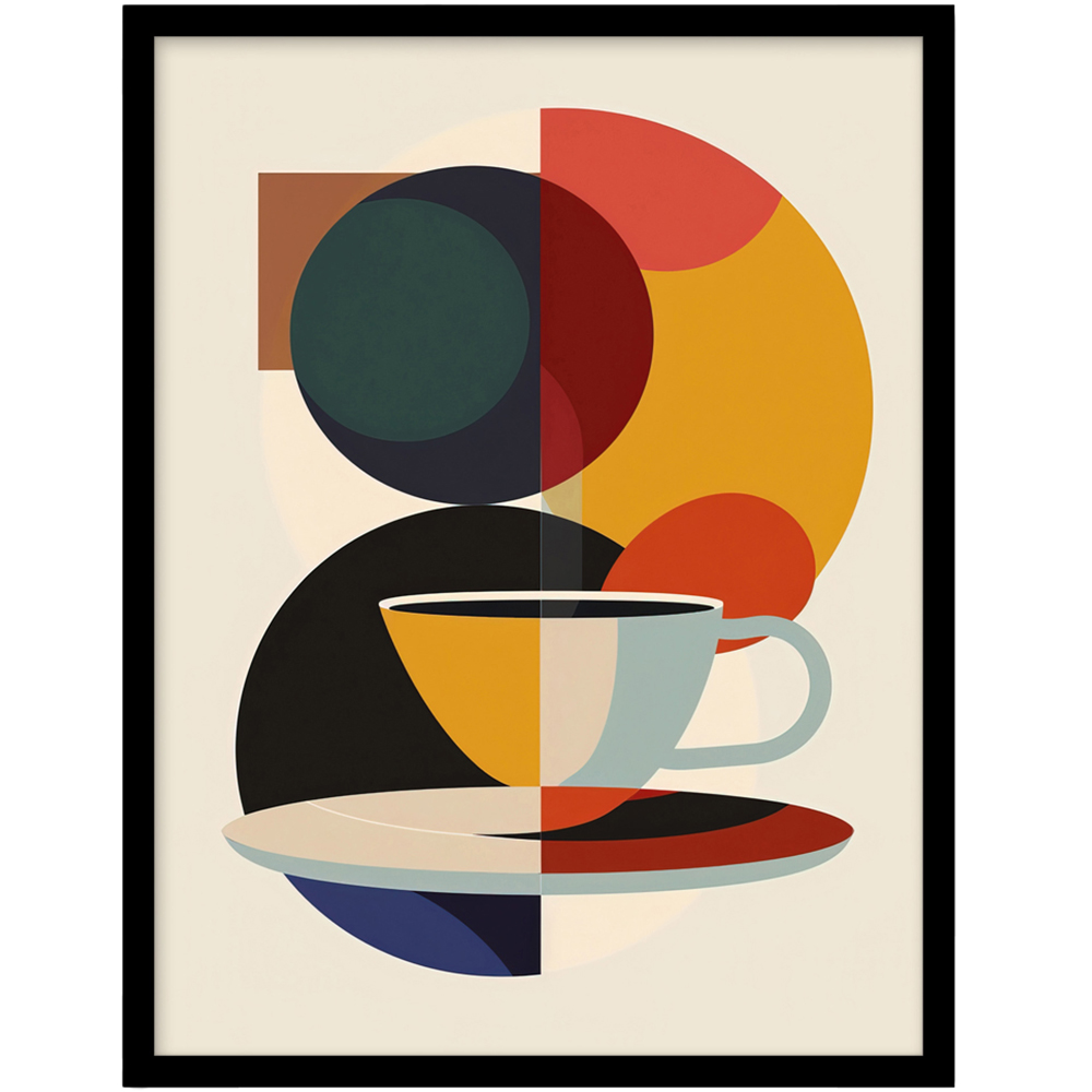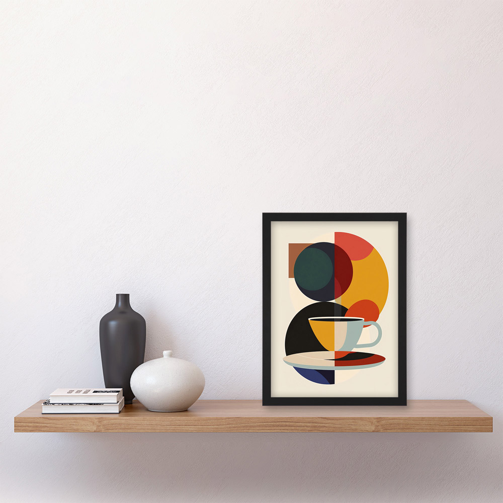 Elevate your space with the Artery8 Coffee Cup Bauhaus Geometric Design Kitchen Black Framed Wall Art Print A4, a captivating piece that blends modern aesthetics with classic Bauhaus influences. Perfect for any room, this art print shines with its superior colour and finish, thanks to the latest high-tech printing machinery used in its creation. Whether it's setting a sophisticated tone in your living room or adding a touch of inspiration to your home office, this framed print adapts seamlessly. Moreover, it serves as an excellent gift option for special occasions like birthdays or housewarmings, with its easy-to-hang design and shatterproof styrene glass for added safety.