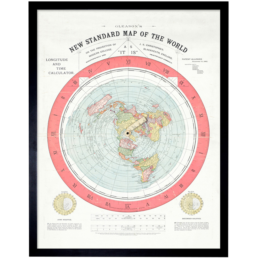 Step back in time and across the globe with the 'Map Gleason 1892 World Time Calculator Flat Earth' framed wall art print, a piece that not only decorates your space but also sparks intriguing conversations about historical views and cartography. Crafted with precision using superior materials and the latest printing technology, this high-quality art print is encased in a robust wooden frame, complete with shatterproof styrene glass for added safety. Measuring 30 x 41cm, it is an ideal size for both home and office settings, ensuring a striking display with its vibrant, long-lasting colours and sharp details. Pre-attached back fittings make it ready to hang, bringing a touch of vintage charm and educational flair to your decor effortlessly.