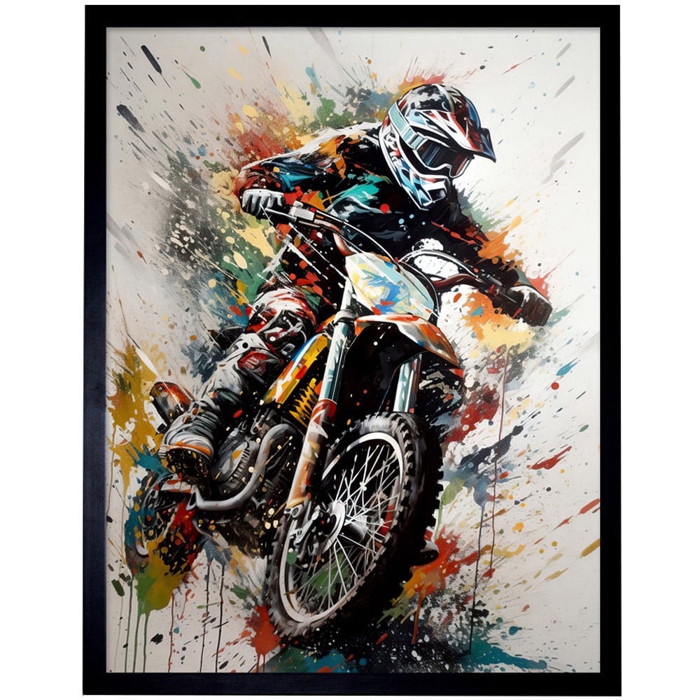 This Artery8 Motocross Racer Paint Action Shot Framed Wall Art Print is a new, high-quality framed art piece. Crafted using superior-grade materials and the latest printing technology, this print measures 30 x 41 cm (12 x 16 inches). The external frame size is 33.5 x 43.7 cm (13.2 x 17.2 inches), with a visible image area of 29.3 x 39.5 cm (11.5 x 15.6 inches). It comes with pre-attached back fittings for easy hanging. For safe delivery, the frame features shatterproof styrene glass. Please note that the actual item may vary slightly in colour from the on-screen image due to screen brightness and contrast settings. All items are dispatched in strong, sturdy packaging to ensure they arrive safely.