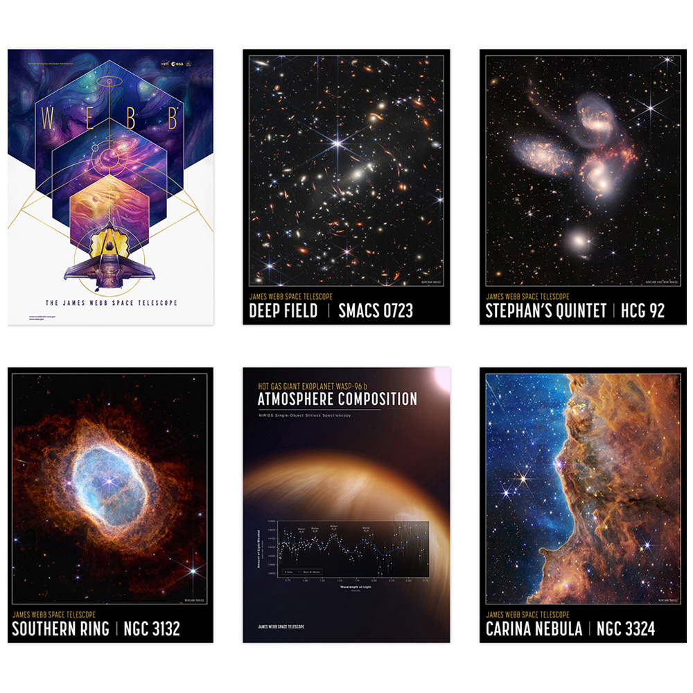 Elevate your space with the celestial charm of the Pack of 6 NASA James Webb Outer Space Telescope Astronomy Wall Art Posters. Crafted with superior grade materials and the latest printing technology, these high-quality reproduction art prints capture the essence of cosmic exploration. Each poster, measuring 30 x 41 cm, showcases stunning visuals from the James Webb Space Telescope, making them a perfect addition for any astronomy enthusiast or a striking decor piece in a modern living space. Delivered in strong, sturdy packaging, these prints ensure both protection and quality upon arrival.