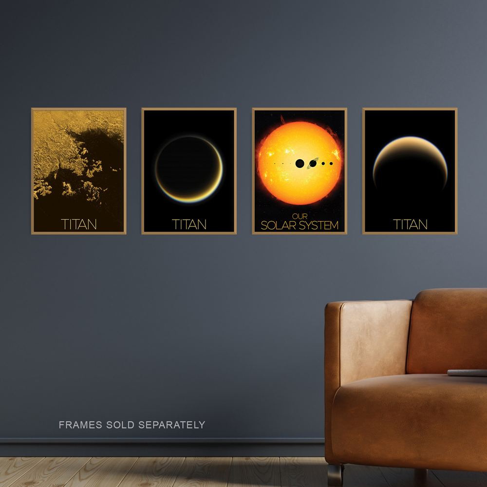Bring the universe into your home with this exquisite set of four NASA-themed wall art prints, showcasing our solar system's marvels including the Sun, Saturn, Crescent Moon, and Titan Ligeia Mare Lake. Each 12x16 inch print captures the awe of space exploration, printed on thick, luxurious art paper that promises both quality and durability. Perfect for any space enthusiast looking to add a cosmic touch to their decor, these unframed prints offer flexibility in framing to match any room's style.