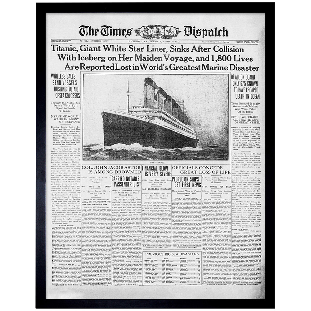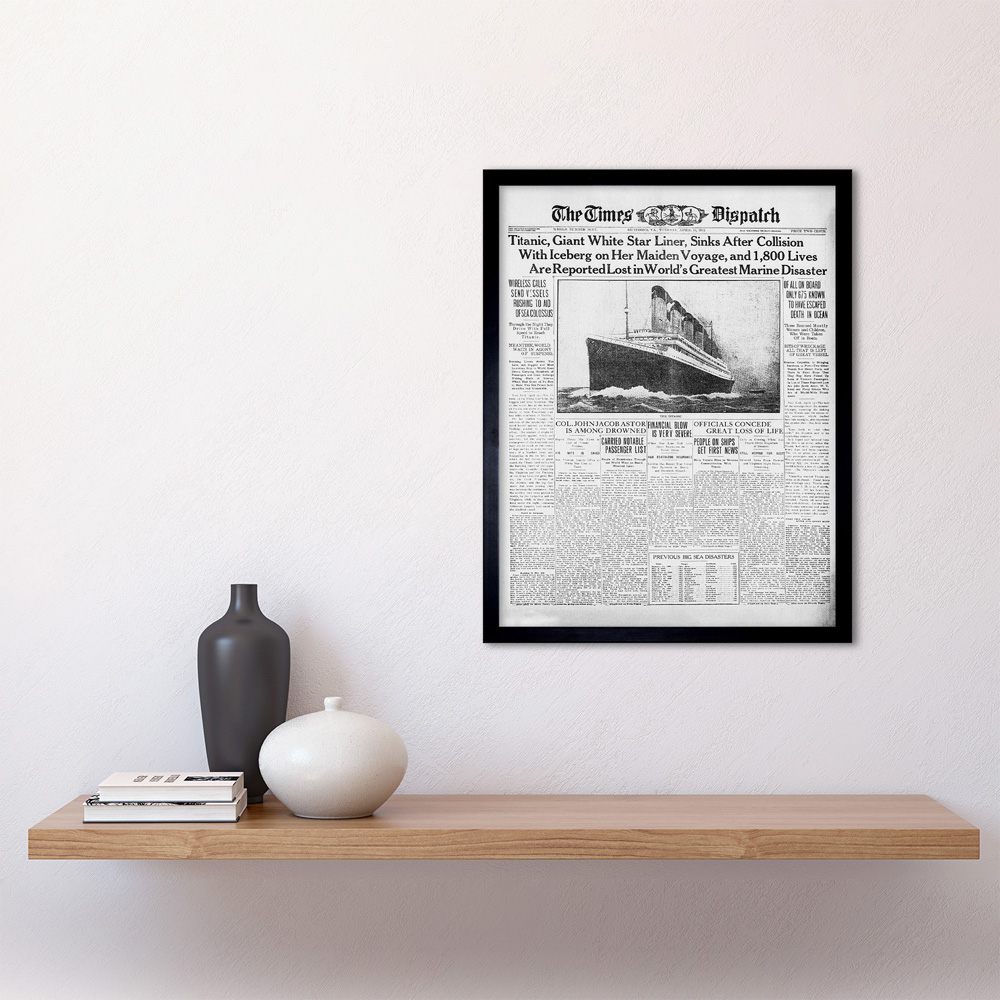 Step back in time with the 'Newspaper Front Sheet Page Titanic Disaster 1912 Times Despatch Framed Wall Art Print', a captivating piece that brings a piece of history right into your living space. Crafted using the latest printing technology and superior-grade materials, this framed art print is not just a decoration but a commemoration of the tragic Titanic disaster of 1912. Measuring 30 x 41cm, it features a quality wooden frame that enhances the vintage newspaper reprint, complete with back fittings for easy installation. The shatterproof styrene glass ensures that this historical artefact remains preserved, making it a poignant addition to any room.